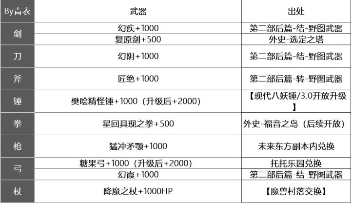 【3.0】武器/防具/徽章/灵晶/矿石堆血一览