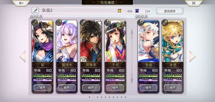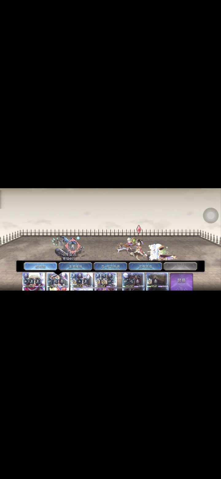 可能这个东西发出来也没多少人看,况且我也相信各位大佬已经用军师带魔队过了,在这呢,我也只是讲一下新人在没有魔队关键角色的情况下可采取的一项思路(亲测有效,但很折磨,回合数巨高,不喜勿试)。看下面的图,蓟下不了那就直接带上(降力降风耐),渣猫带专武--巨魔贝恩天--原始之力,人鱼弓带神曲,4号位法师选择很多(建议泰坦妹带泉xxx技能方便打条,没有的就选择龟龟上毒痛),后排两个是架子(没这俩输出更折