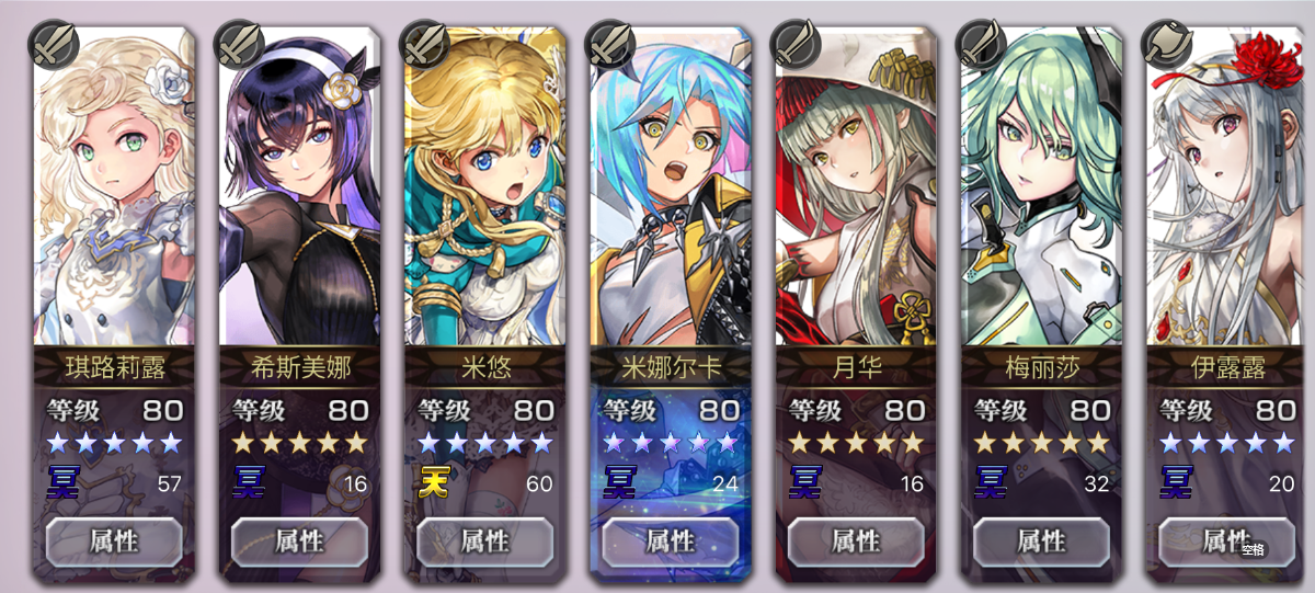 as火剑(1本),宝石剑(1本),仙华(1本),as八云,as阿尔玛,ES安娜贝尔,乌兹赫拉;还有未来的as狼姐as,es都肝出来了,乌兹抽了个4.5,5星书也好肝;狼姐估计只能等肝书了,本体有了问题来了,只有5本星普,不知道该给谁用了