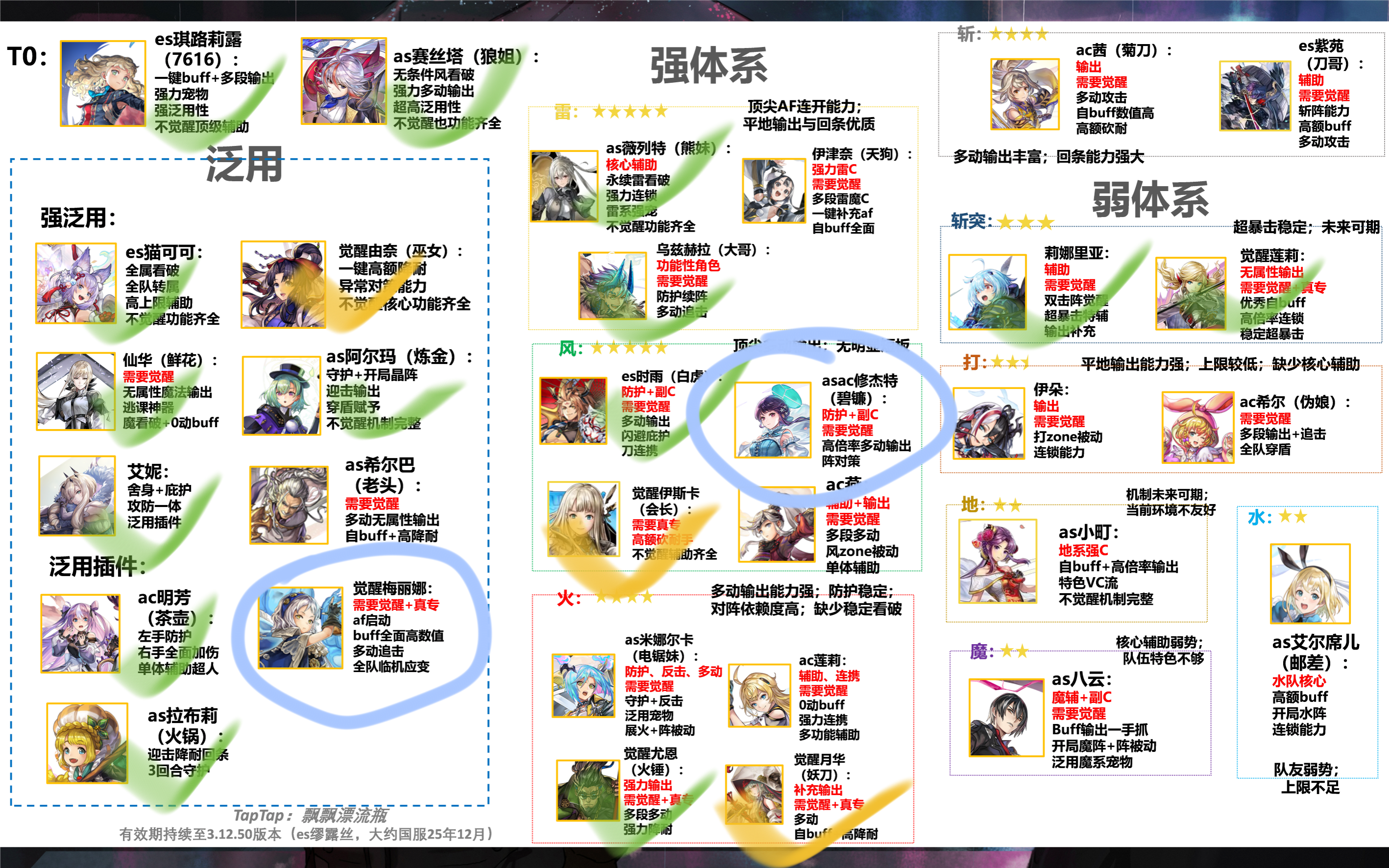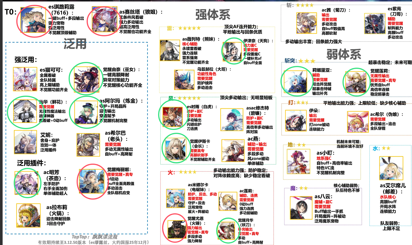 红圈是已有+觉醒。绿圈是已有。这次猫铃铛,有 艾尼,AS老头,大哥。大哥们帮忙看看选哪个好。