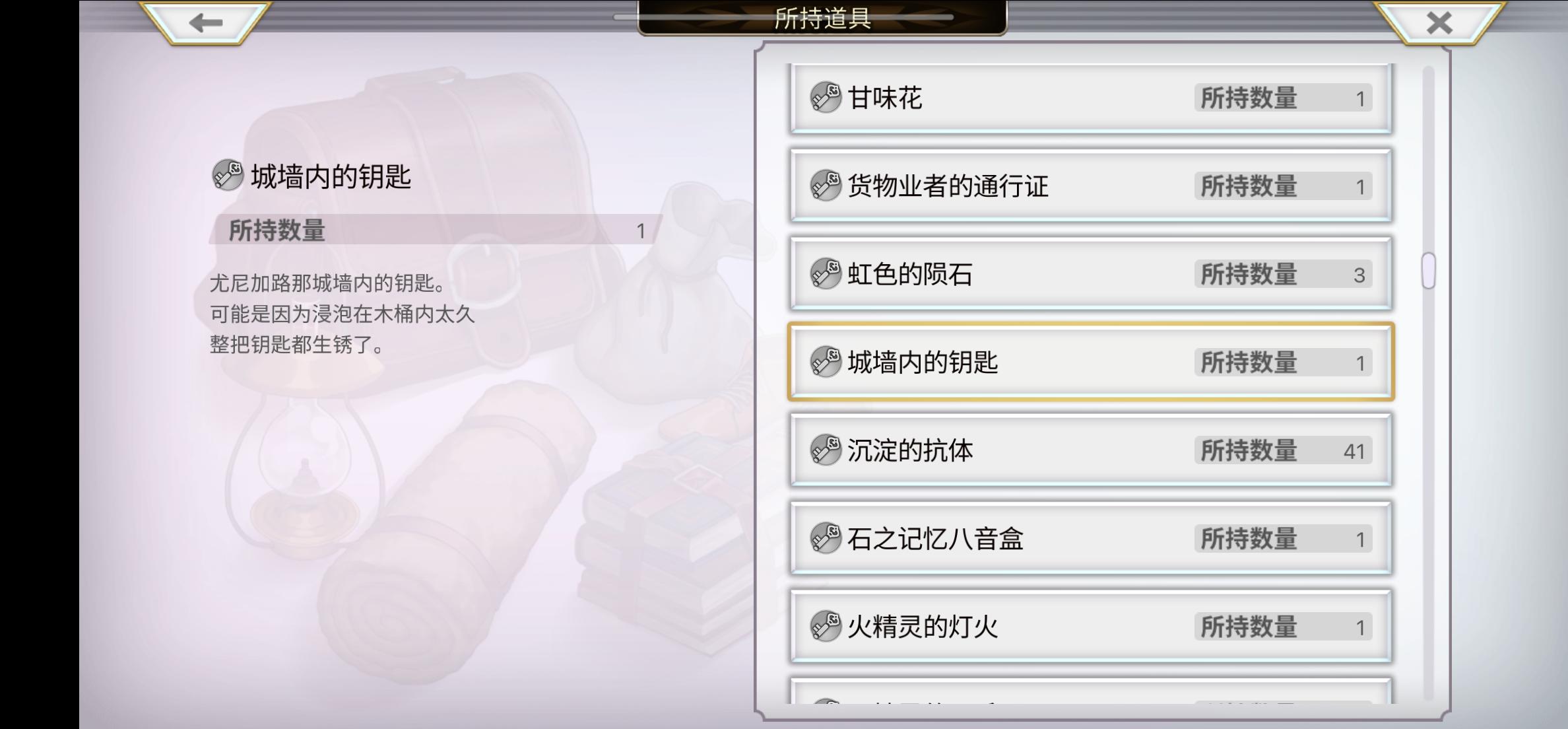 城墙内的钥匙🔑尤尼加路那酒馆里得到的 各位猫友有知道的吗?求解