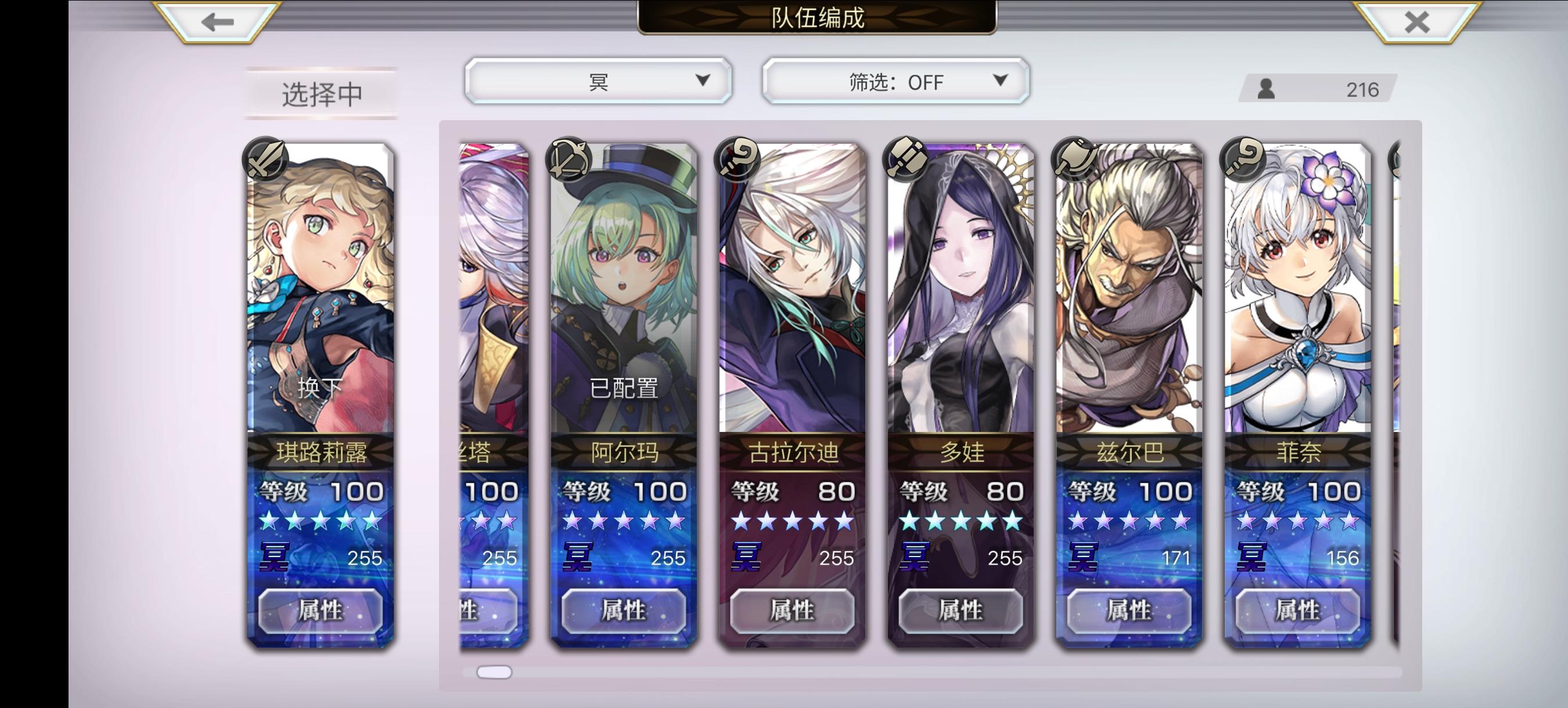 这期猫铃铛加上10月大月卡时雨就差不多满了,下一个打算搞一下雷队,但是我的雷队好像输出和打条都拉的很。风队的话伤害完全是超标了忍者可以往后面靠不着急,现在就是风、水、火、地、雷、阴、晶、魔、斩、突、打11个队伍里,风队无脑打条和狼的超级输出是合格了,晶队7616和炼金还有低天冥的水母勉勉强强也算合格,火队电锯加上低天冥火锤、月华也能算合格,魔队仙华加上八云和低天冥由乃,斩队和风队一样狼在基本上就合