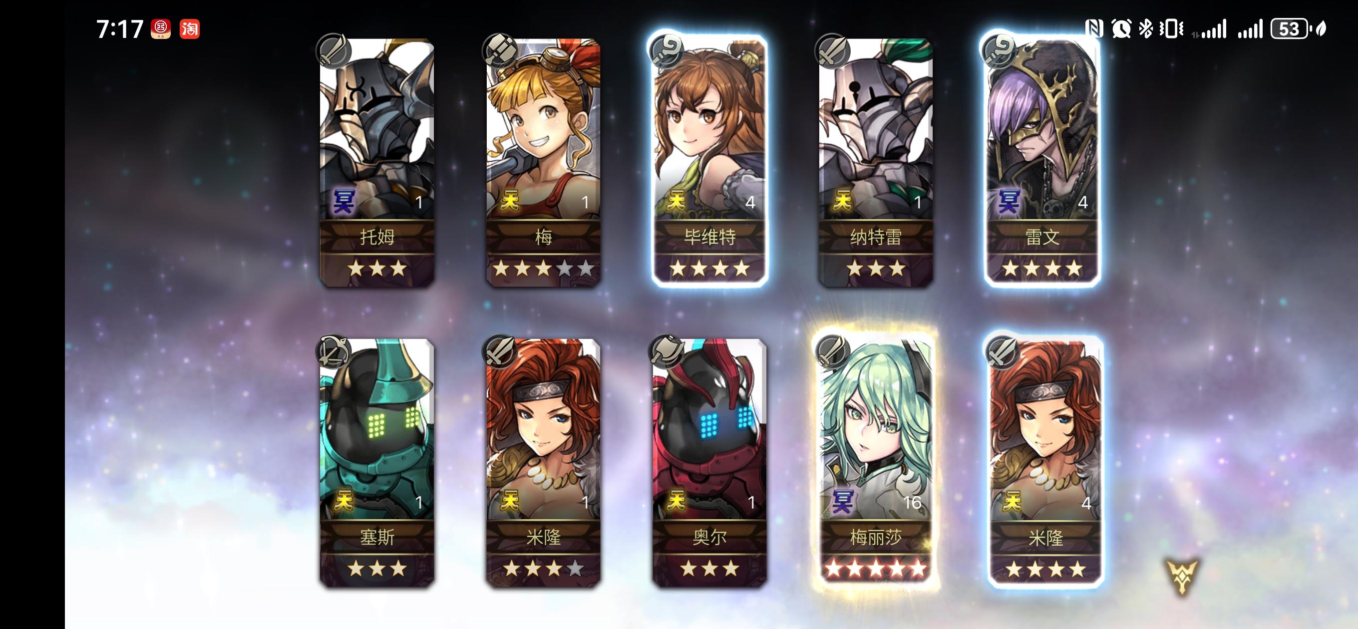 目前主线开到3.0中篇还没打,除了鱼妹和诺克西斯其他的配布都到手了,感觉是萌新期的保护期,抽卡还挺顺利的,除了as阿尔玛氪了六七百没拿下然后去肝隐王抽出来的(虽然在as阿尔玛池子出来之前五天进了一次终镜+2地牢诗人),希望武这些武器也通过光景大大的攻略成功拿下,梅纳斯试炼也在大佬的配队下能稳定4t,但是高力智速的徽章没点路子,这次氪了铃铛自选了艾妮和八云,都是说很强,