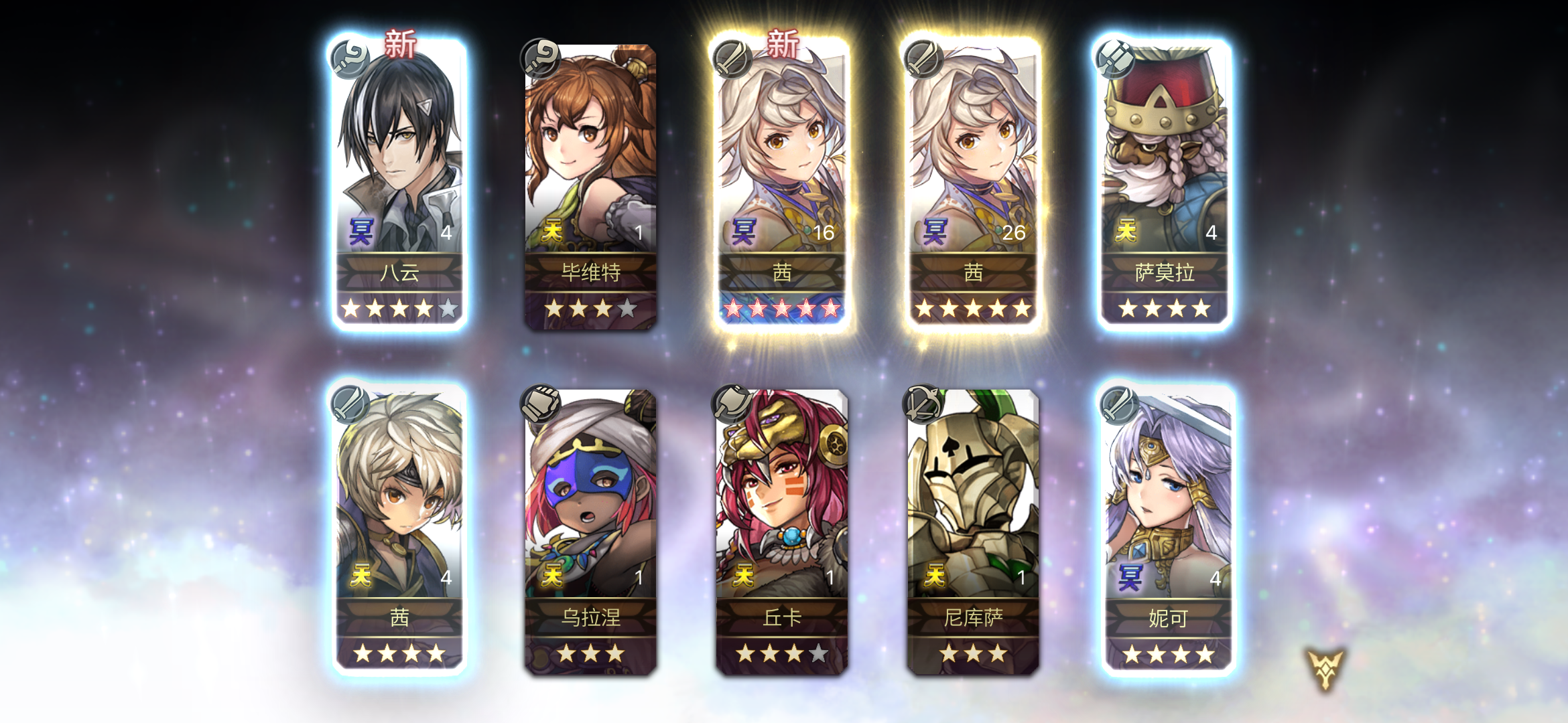 图2是我的主力队,目前正在推主线第二部,btw,这次还抽到了4星7616,是不是养7616好一点
