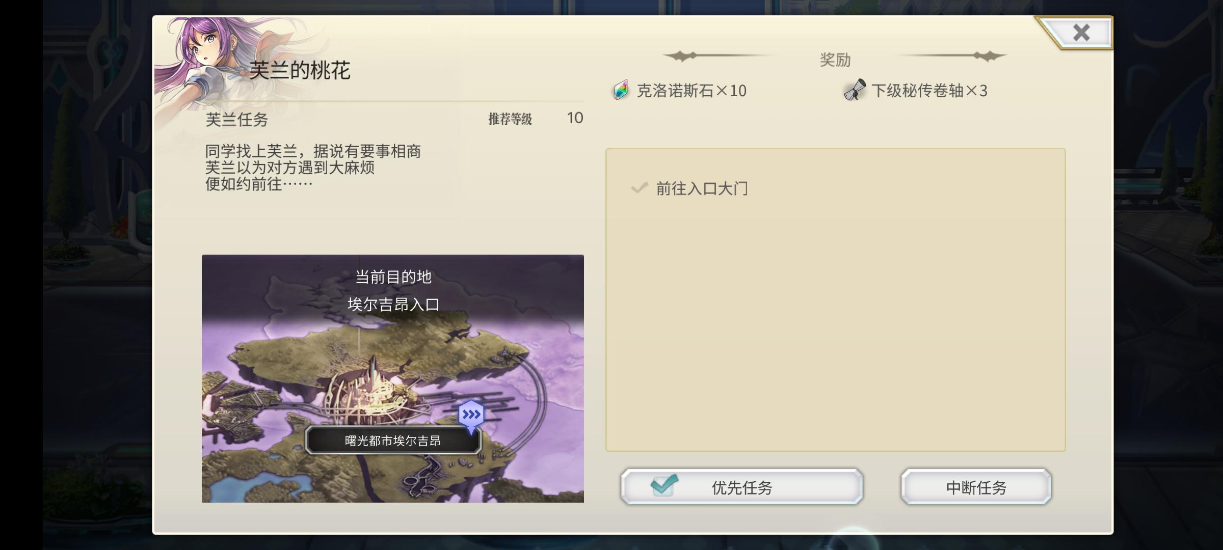 芙兰的桃花这个任务,这个入口到底在哪里啊,找半天了,几个入口都找了,就是没有看见任务地点啊!球球大佬帮忙指点一下#另一个伊甸穿越时空的猫