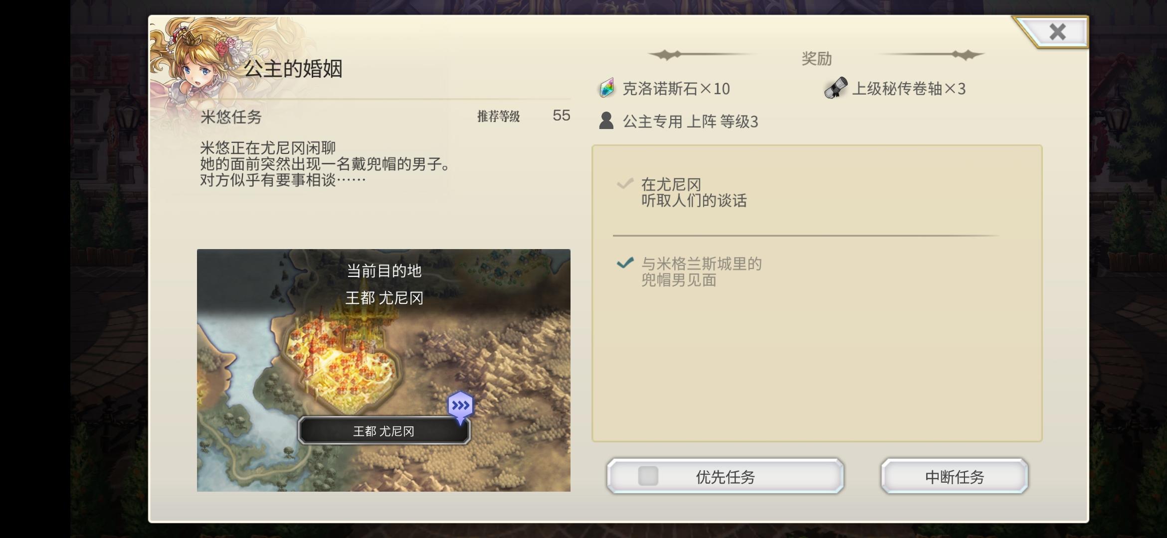 为什么米悠5星任务进行到中间,要求在尤尼冈找人谈话,刚开始地图还有2个任务标志,找了2个人谈完地图就没任务标志了,然后任务上面还是显示要找人谈话??队伍是带上了米悠的,是不是出bug了