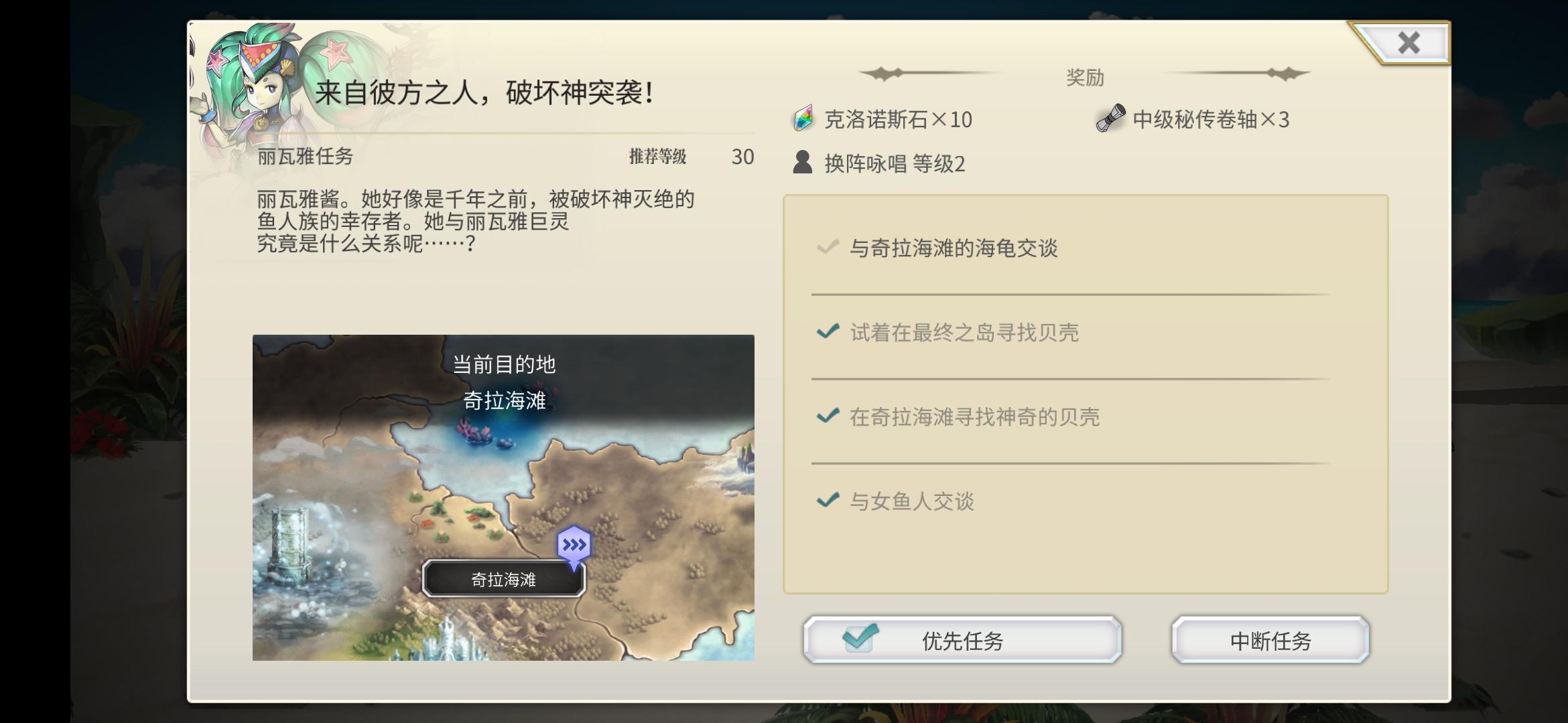 丽瓦雅的角色人物,让找奇拉海岸的大海龟,结果他消失了