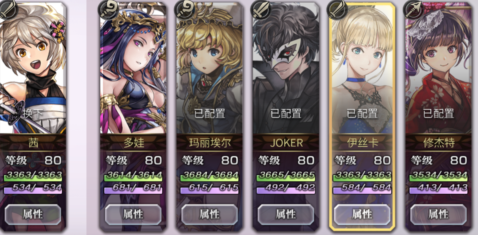 有艾妮、as伊法、es多娃、阿尔玛、碧琪卡、as米斯特蕾娅。打过了,就前四个人。阿尔玛主输出,万灵-疯狂-乙太*3循环;伊法给阿尔玛上胜利祝祷,阿尔玛哑火的时候补个极光和信仰;艾妮给阿尔玛转阴,阿尔玛哑火的时候补女神巡礼和蝙蝠蔷薇;多娃骑士-月蚀-深渊轮流打。上场开条,阿尔玛开疯狂和覆写,其他人按照阿尔玛哑火对待,上buff,只要月蚀打出来就不怕睡。灵晶带七个力智速减益耐性P,其它正