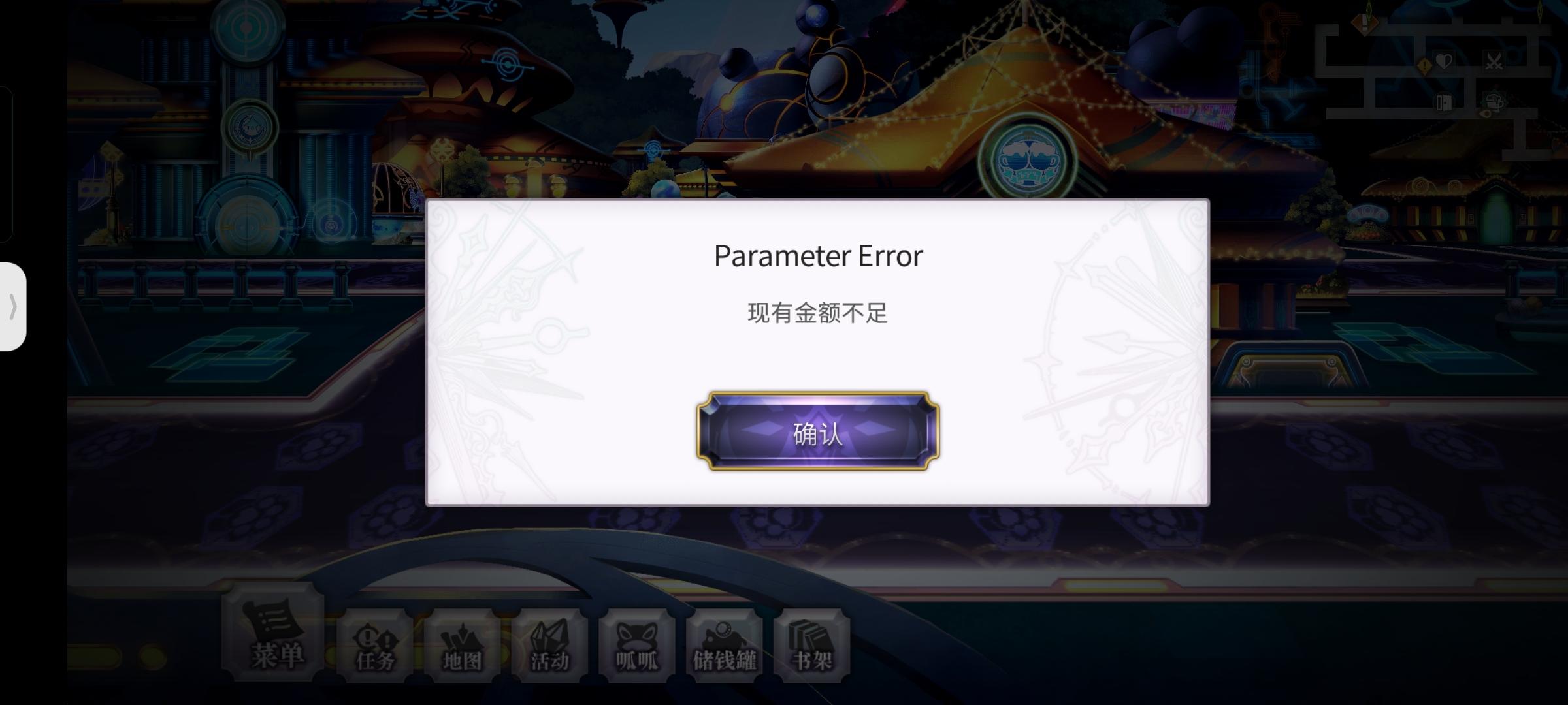 显示我有两个抽奖券,结果一点确定抽卡就说我金额不足