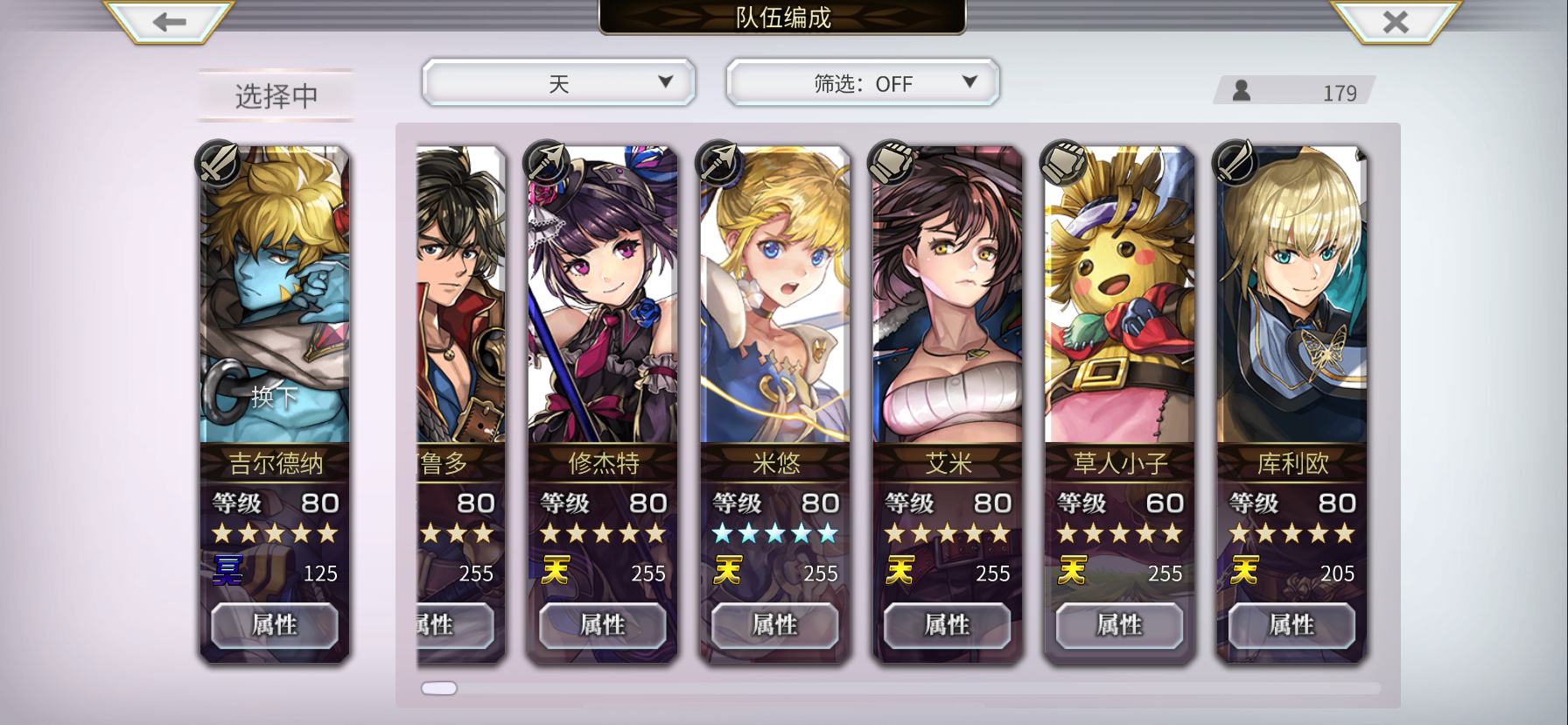 大佬们,弃坑一段时间重玩,练哪几个角色比较好啊,阵容如图。现在打到主线五十几章就很吃力了。