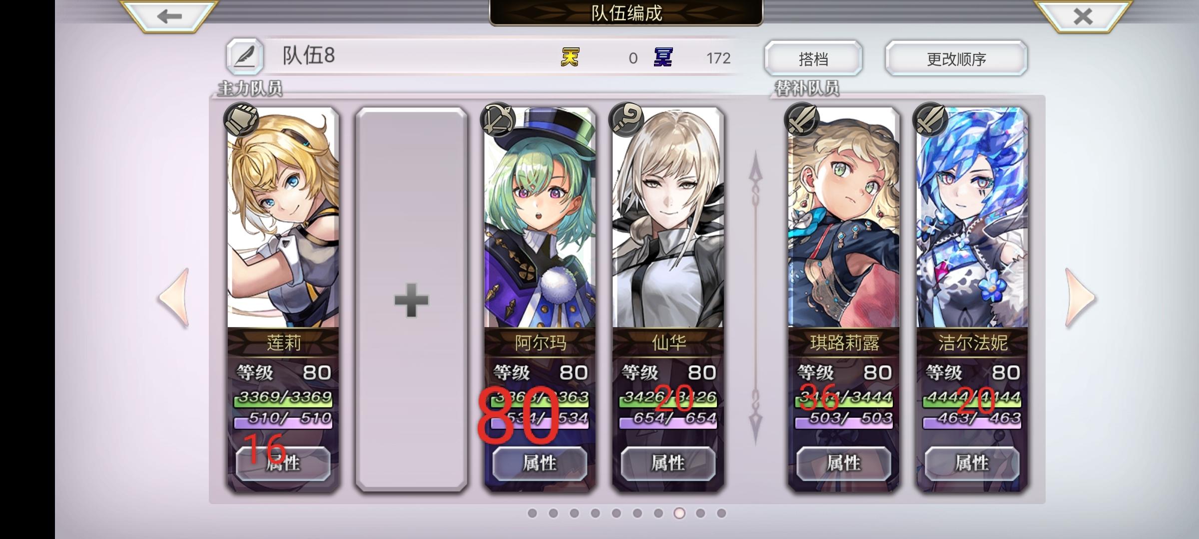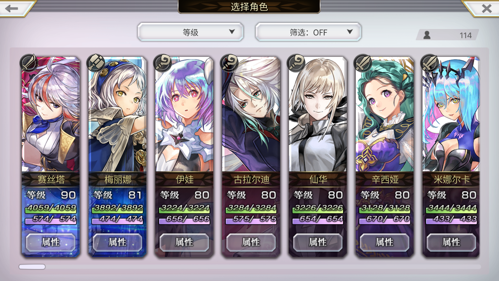 人物能拿的出手的如图,还有4.5星熊妹和4.5星泰坦妹。之前一直是梅丽娜,狼姐,梅丽莎,电锯妹和伊娃在打主线外传之类的。卡在195小黑,还想试试美纳斯,完全打不过。就打完西方外典拿了普莱,195小黑能抗住几下,但99伤害数量还是卡住。现在又有了仙华,彻底迷糊了,不知道怎么配队,还有未来的方向。初步想狼姐配梅丽娜、电锯妹、梅丽莎物理。再泰坦妹搞到5星,仙华觉醒,搞下魔队,但魔队又不知道其他位置怎么弄