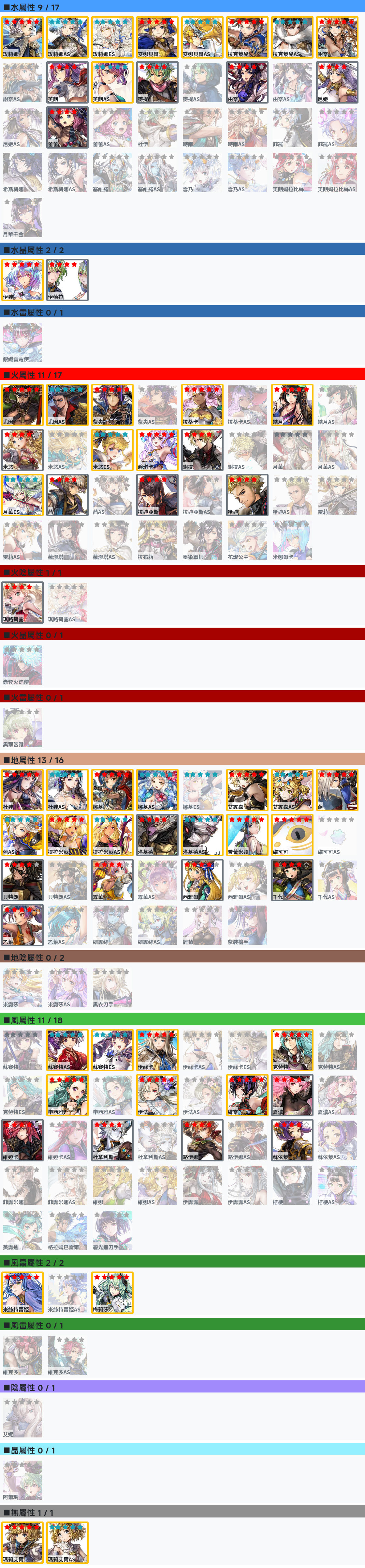 图上没有的角色还有已觉醒: es7616,仙华,as玆尔巴未觉醒: ac莲莉,es安娜,as病娇老角色和配布觉醒: 渣猫,梅丽娜刚回归没多久,角色还认不全,希望大佬们能给个自选的建议