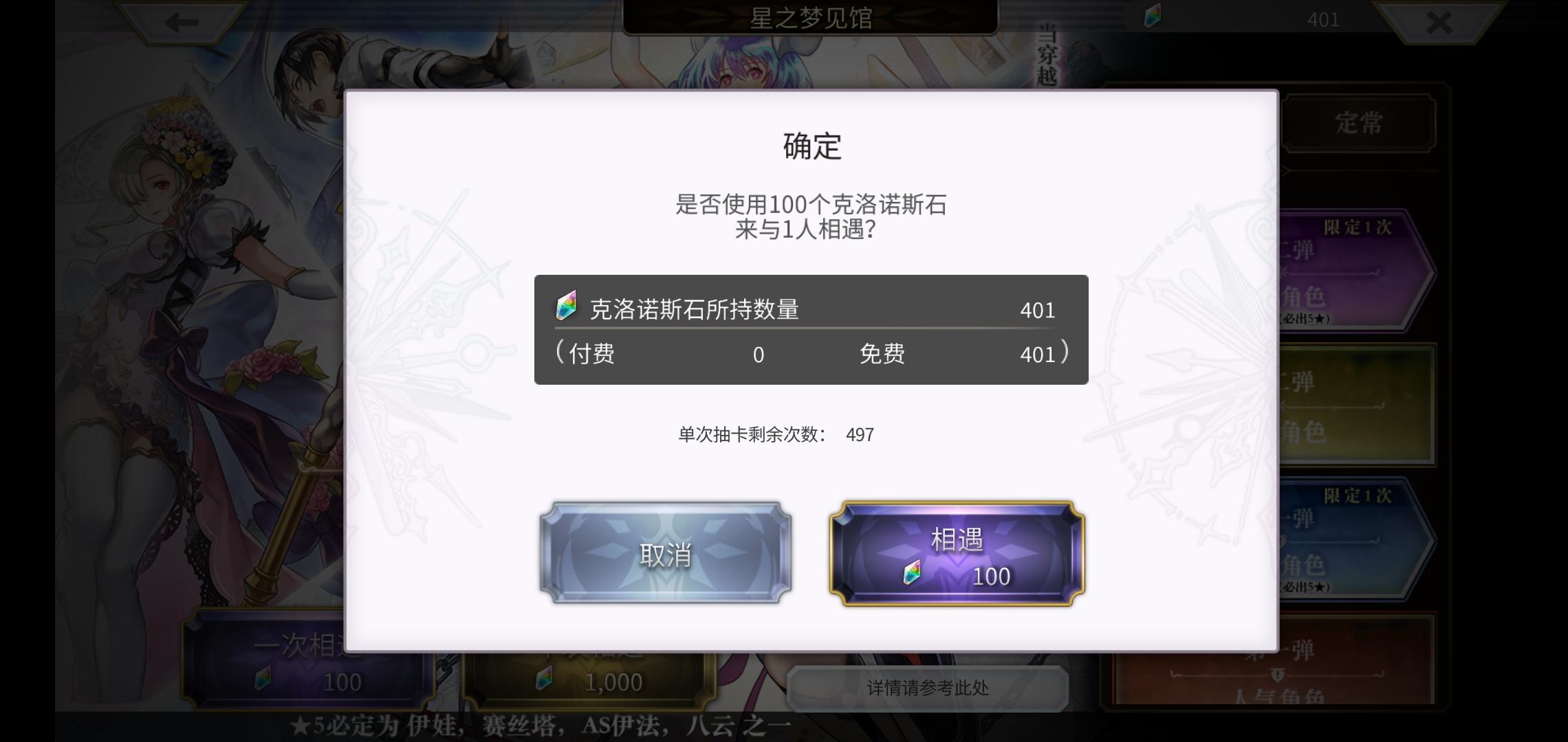 第一弹必五邮差,2发邮差艾尼,完美命中想抽的第二弹必五as依法,6发as依法、伊娃、狼姐,开始完美错过想要的,不过最后出了狼姐,开心第三弹必五es多娃,2发电锯,又完美命中想要的,(ps:本来还想抽武德喵,结果周年最后一发紫券提前出了)总体下来收获颇丰,回坑buff拉满。周年池缺的9个就ac月华和八云没抽到,回归多半个月新角色基本全有了,ac月华