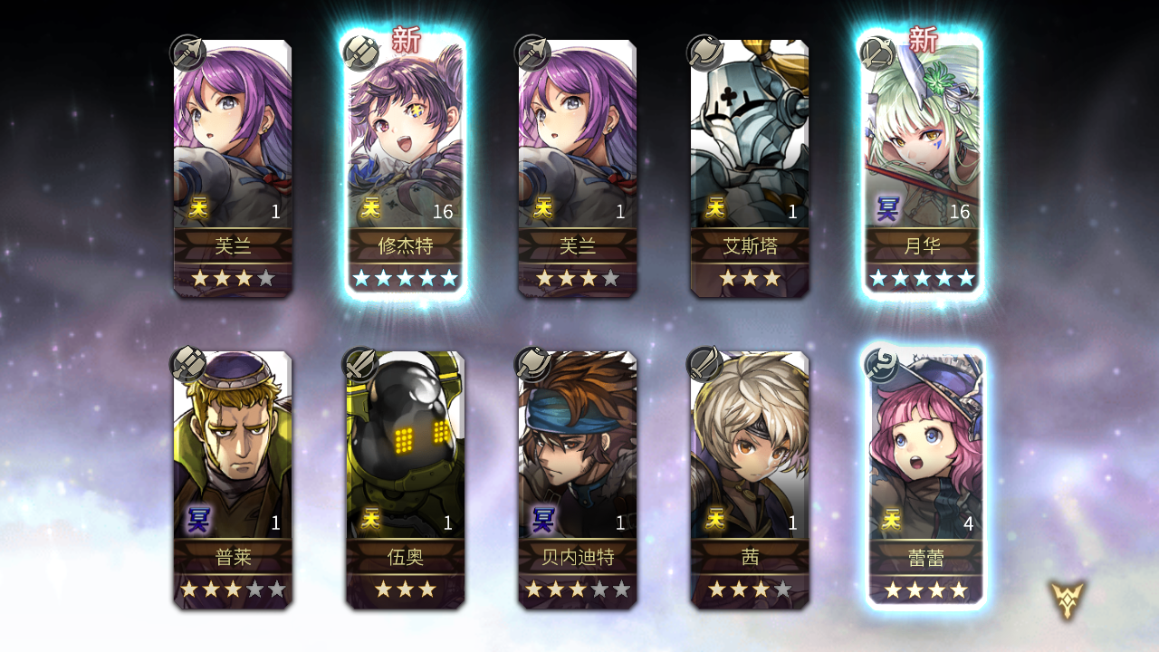 一必五,五十连没第一弹那么欧,完美避开了想要的狼姐跟八云,好歹最后狼姐是出了,差个八云先不抽了