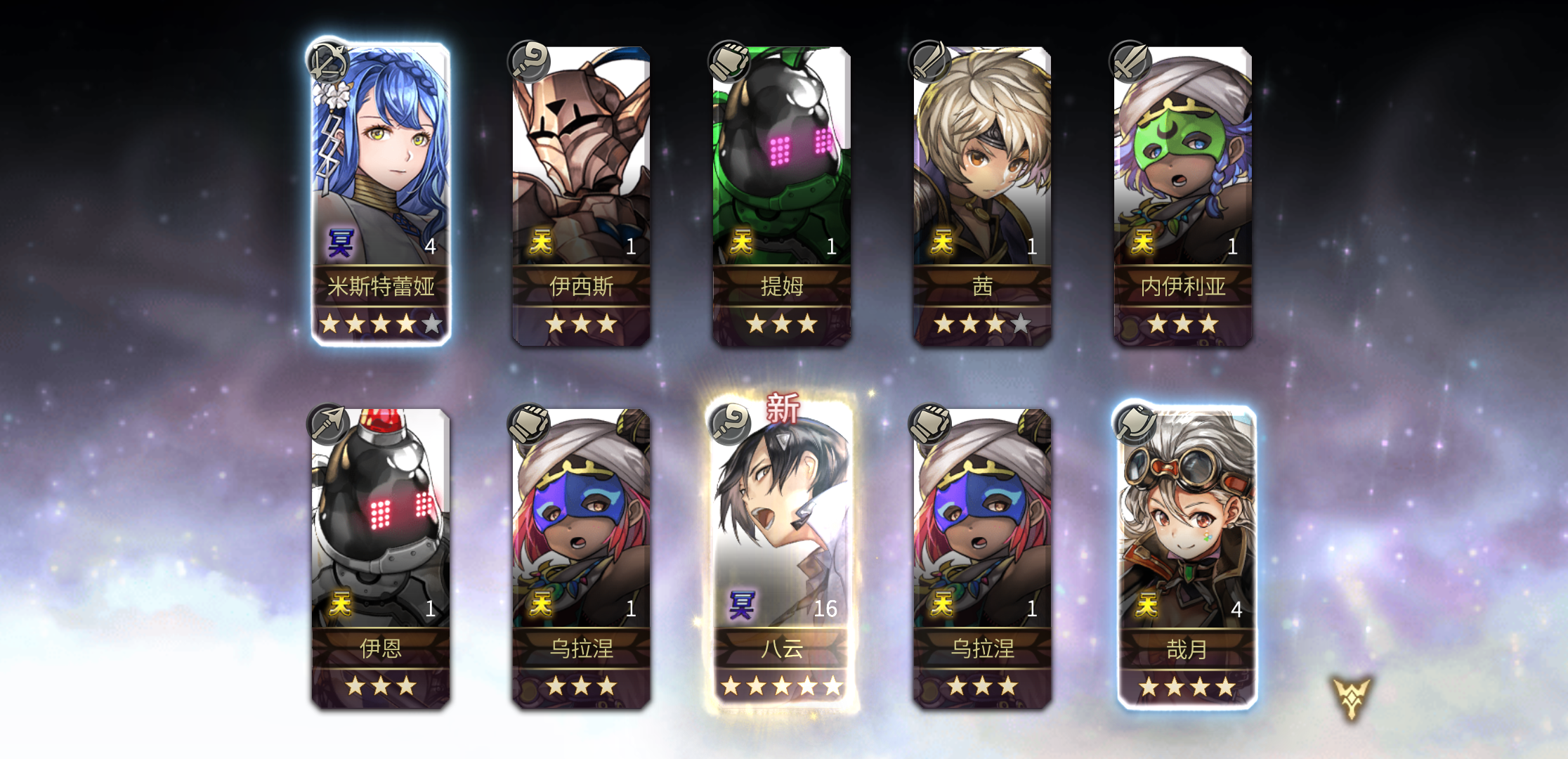 6000石只出了个as辛西娅,没想到最后一发10连3金(但歪了两个new)