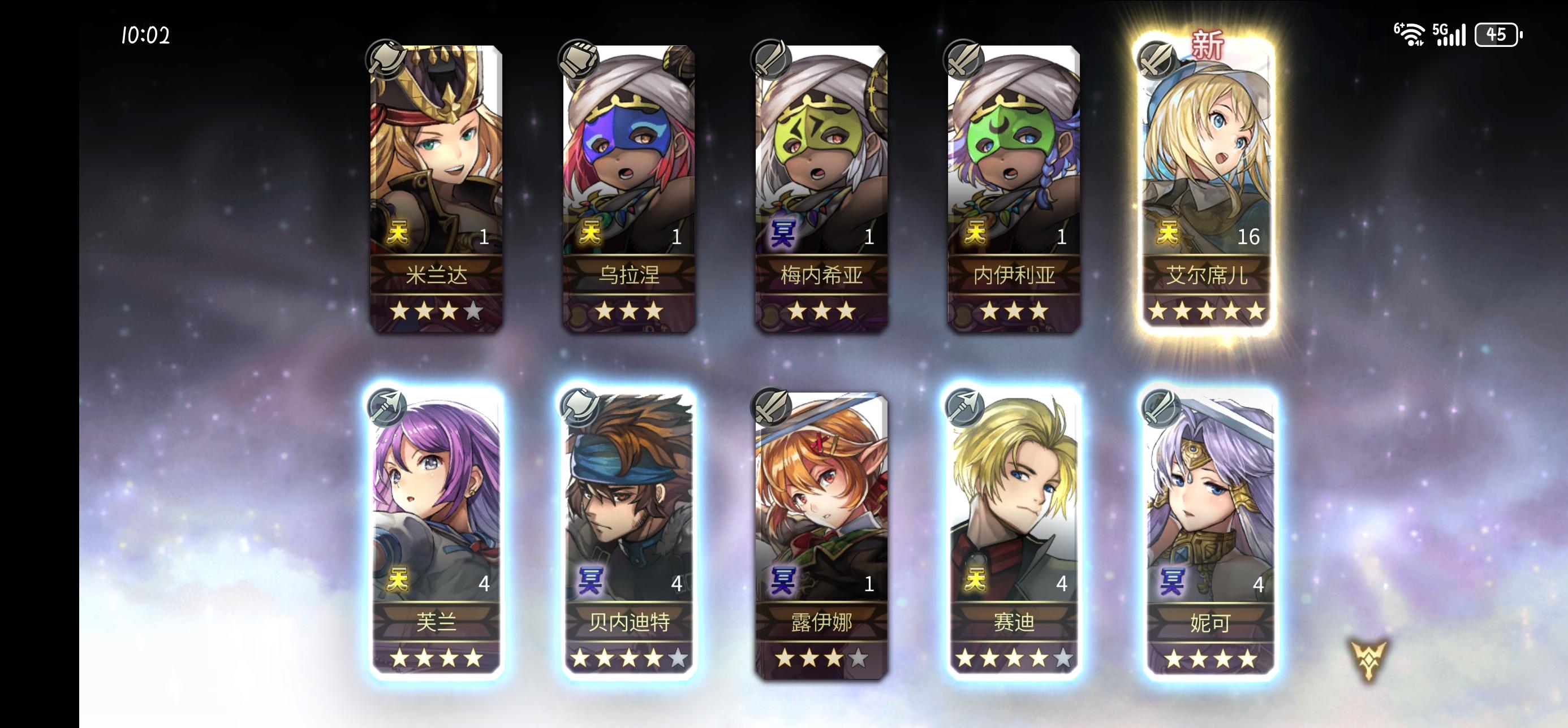 up池,返场池陆陆续续扔了2w多快3万钻未果以后,终于,终于在这次的返场池捞到了4.5星龙妹!!今天抽邮差3000钻9314都没。第4个十连出了双黄邮差。也是头一次双黄!今天是个好日子!这迟来了几天的生日礼物收到了!!