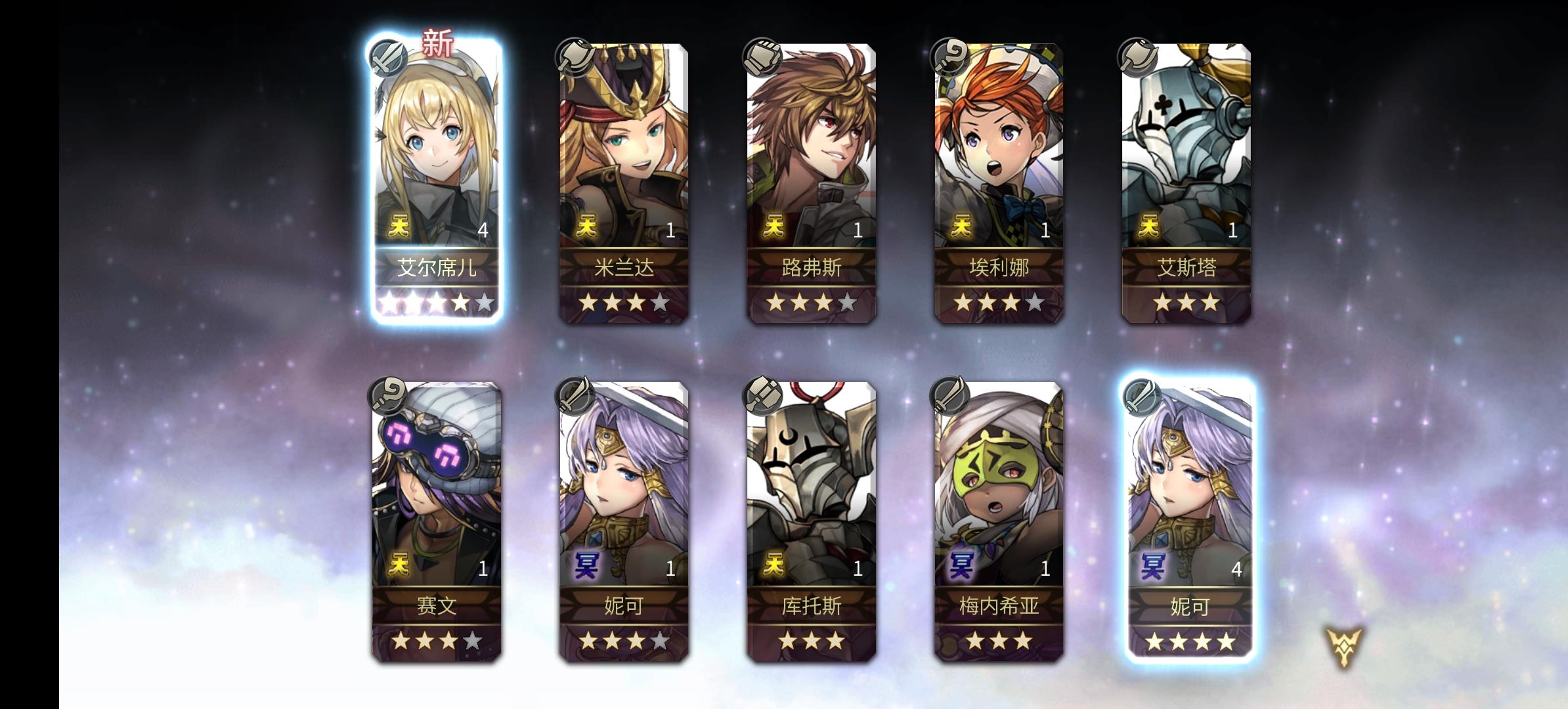 先冥之水滴出的银门,坏了,来了个ns奈岐,不开心。抽邮差,出现四星,还好不亏了。又来一个五星,开心