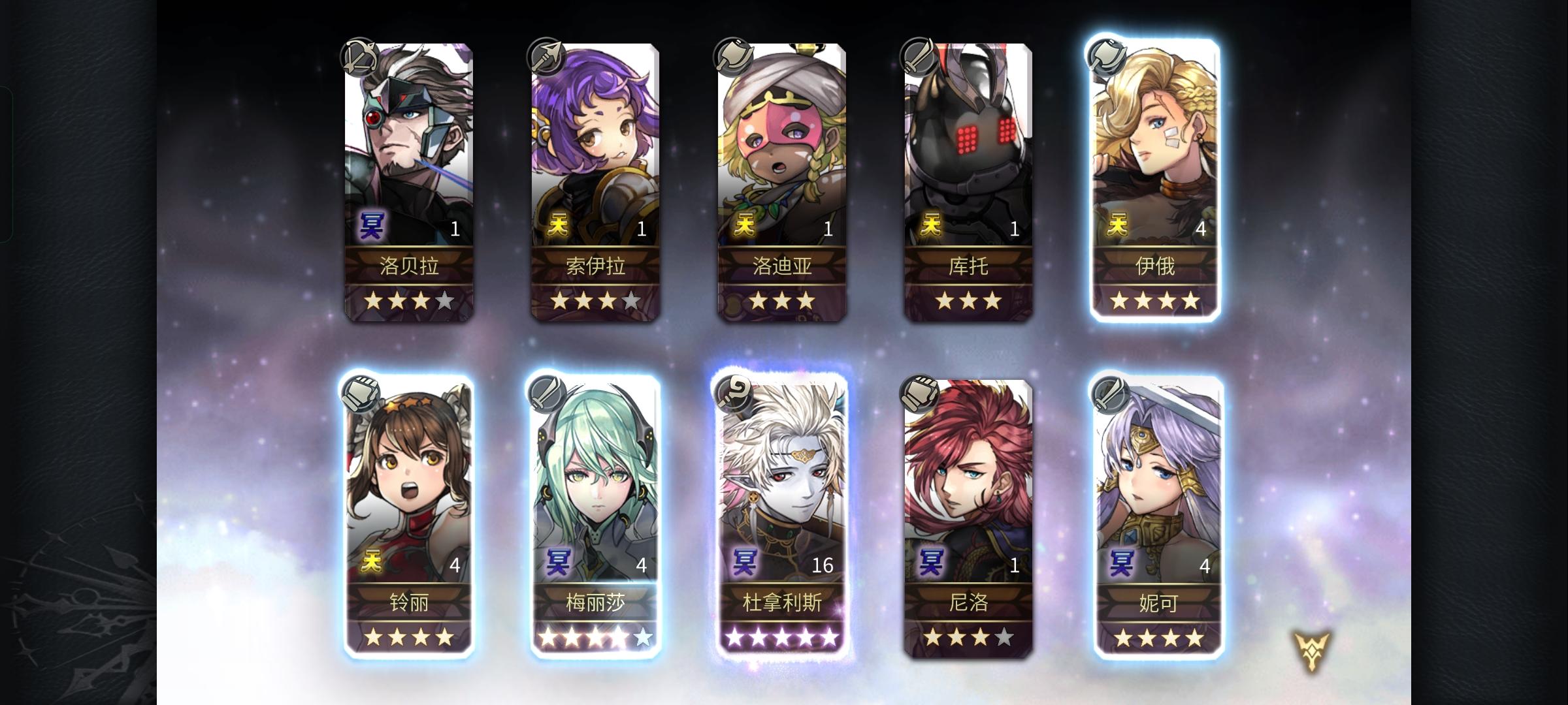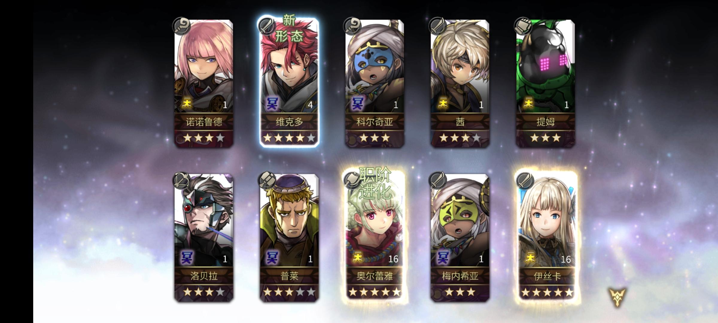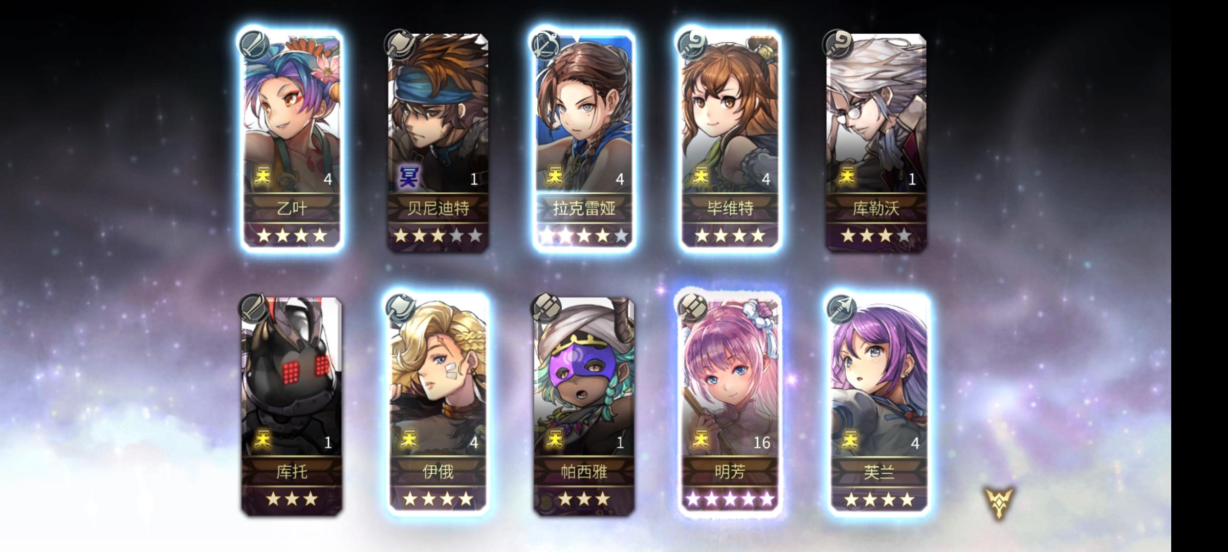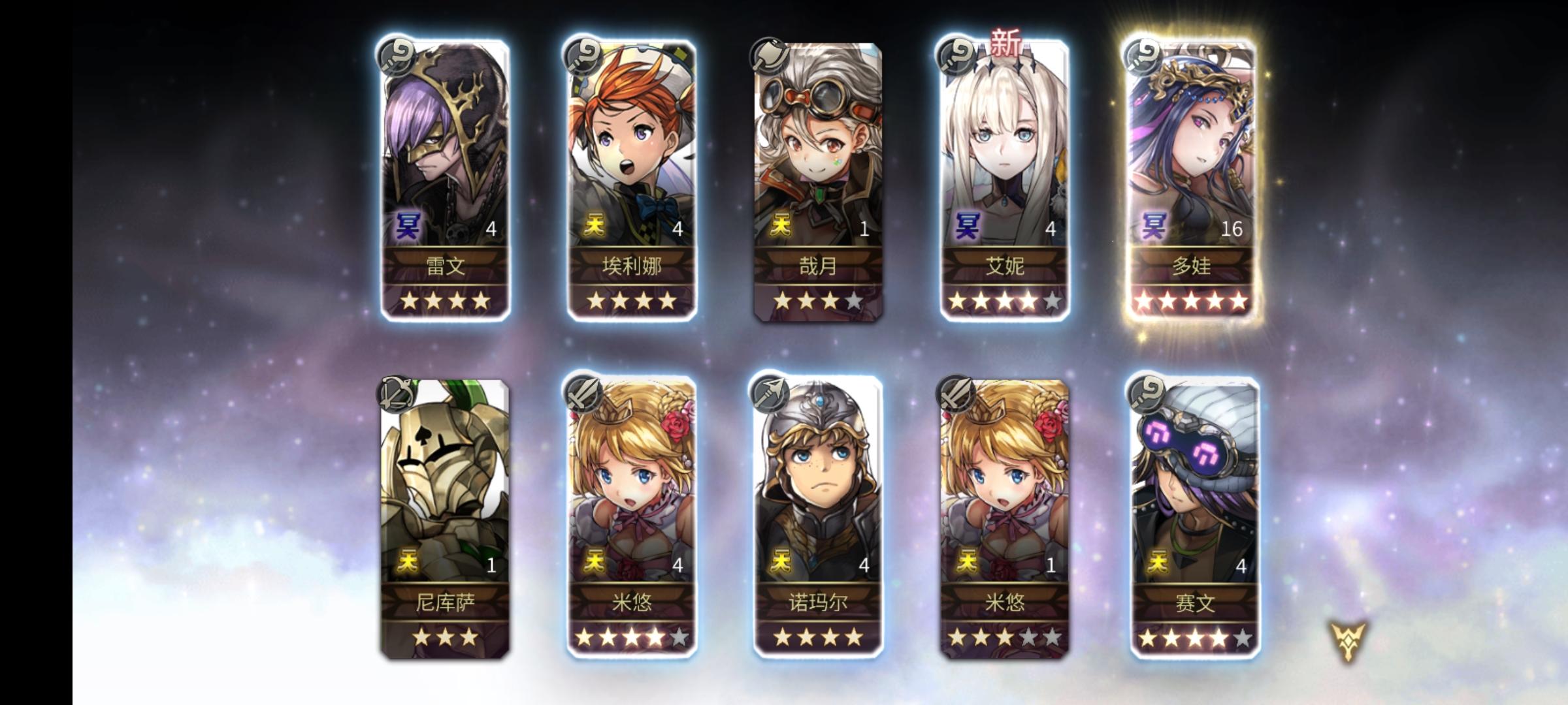 天呐,是因为活动必出五星嘛,我又新增右下角两个没见过的新面孔,我的4⭐芙兰还有新形态的一天,天呐天呐,这破游戏这两天开了眼了叭!