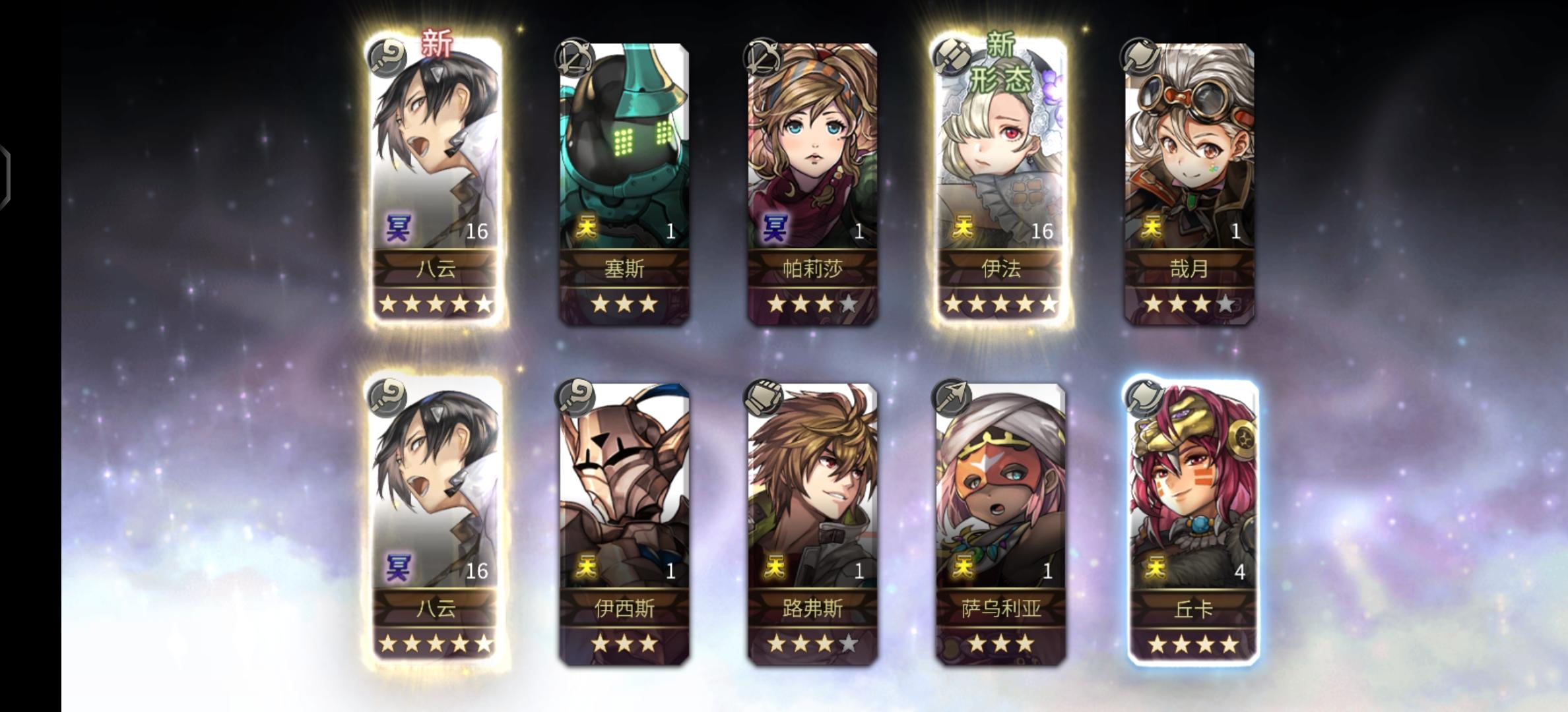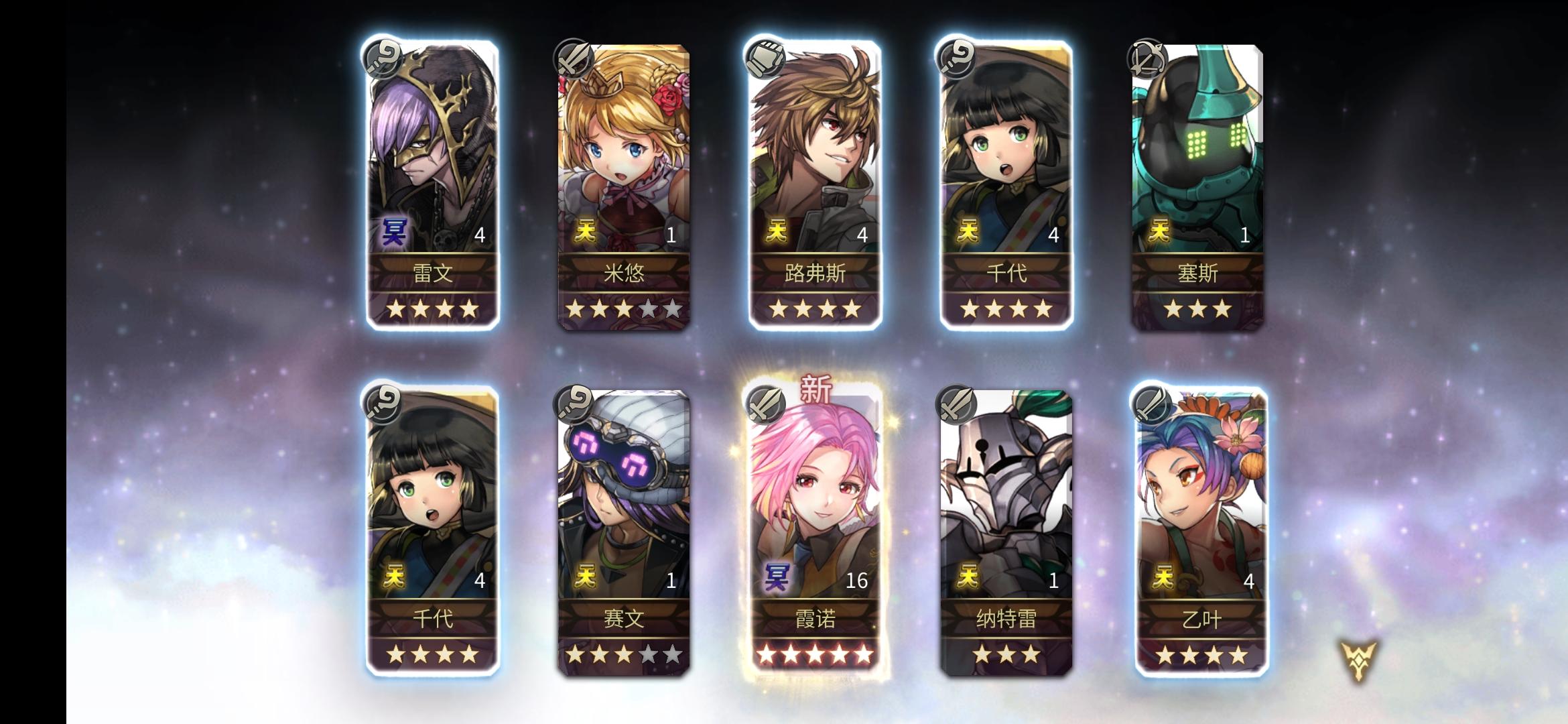 八云抽了50抽左右,才勉强出个四星。霞诺一发十连直接来,大姐果然爱我