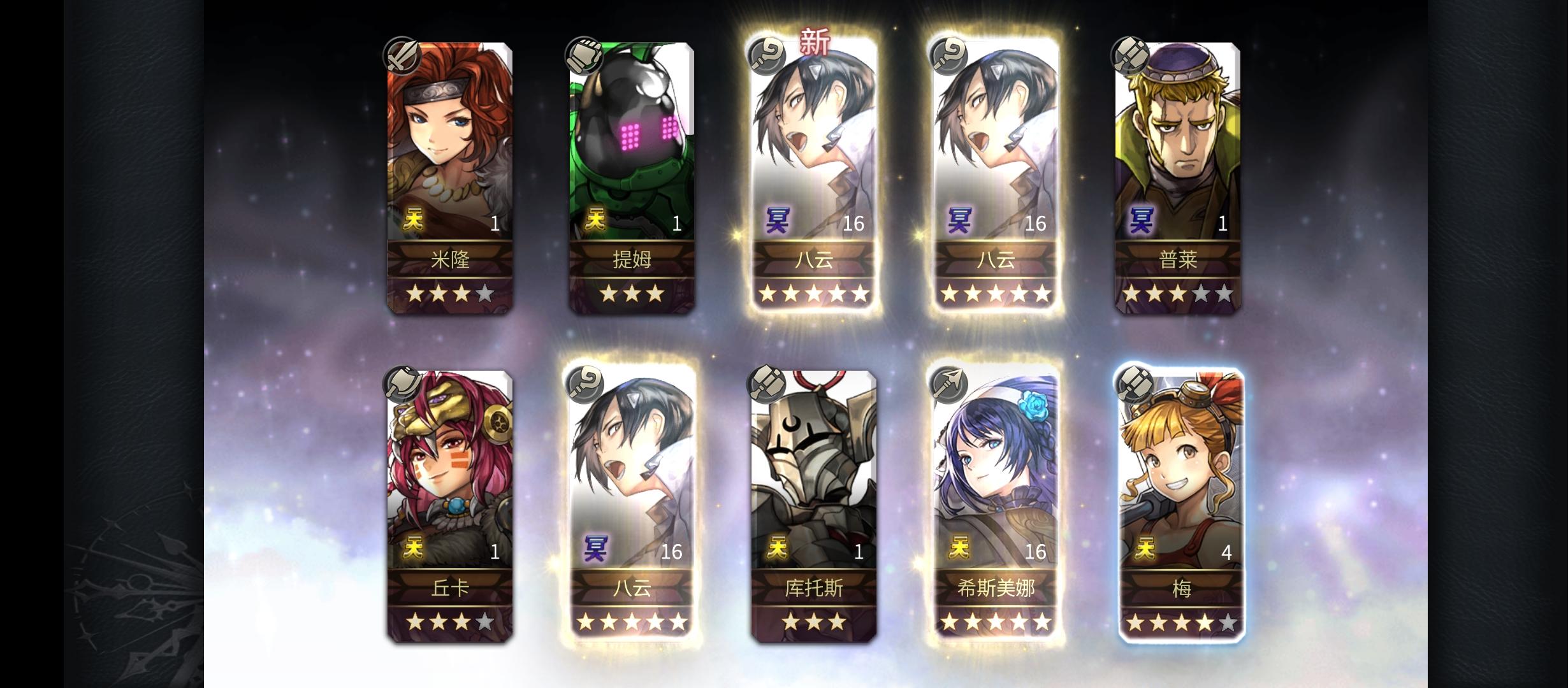 之前就每日登一下领个石头,攒了九百多,版本更新拿了两百多,搞了个十抽没出,然后再来了个单抽直接一发入魂