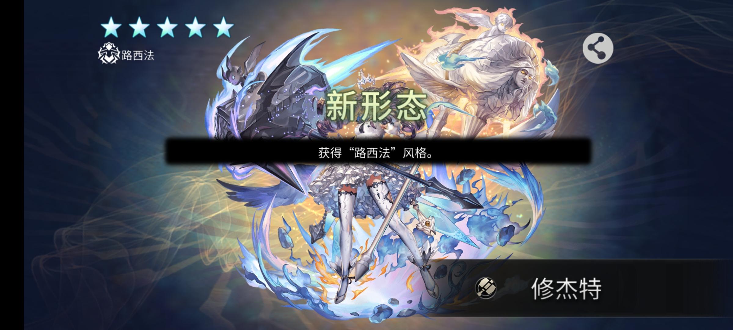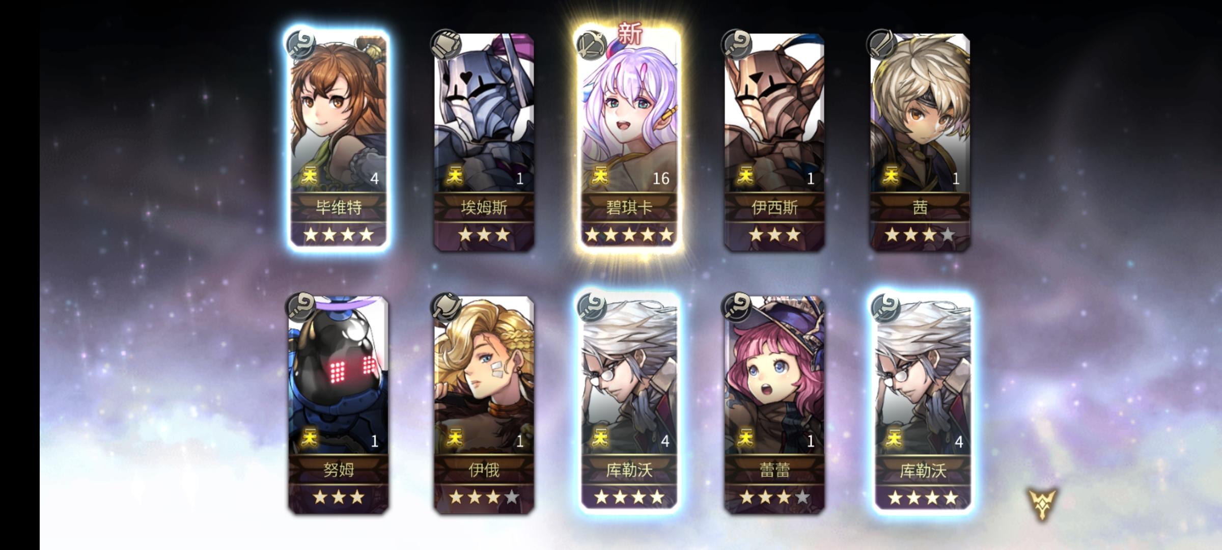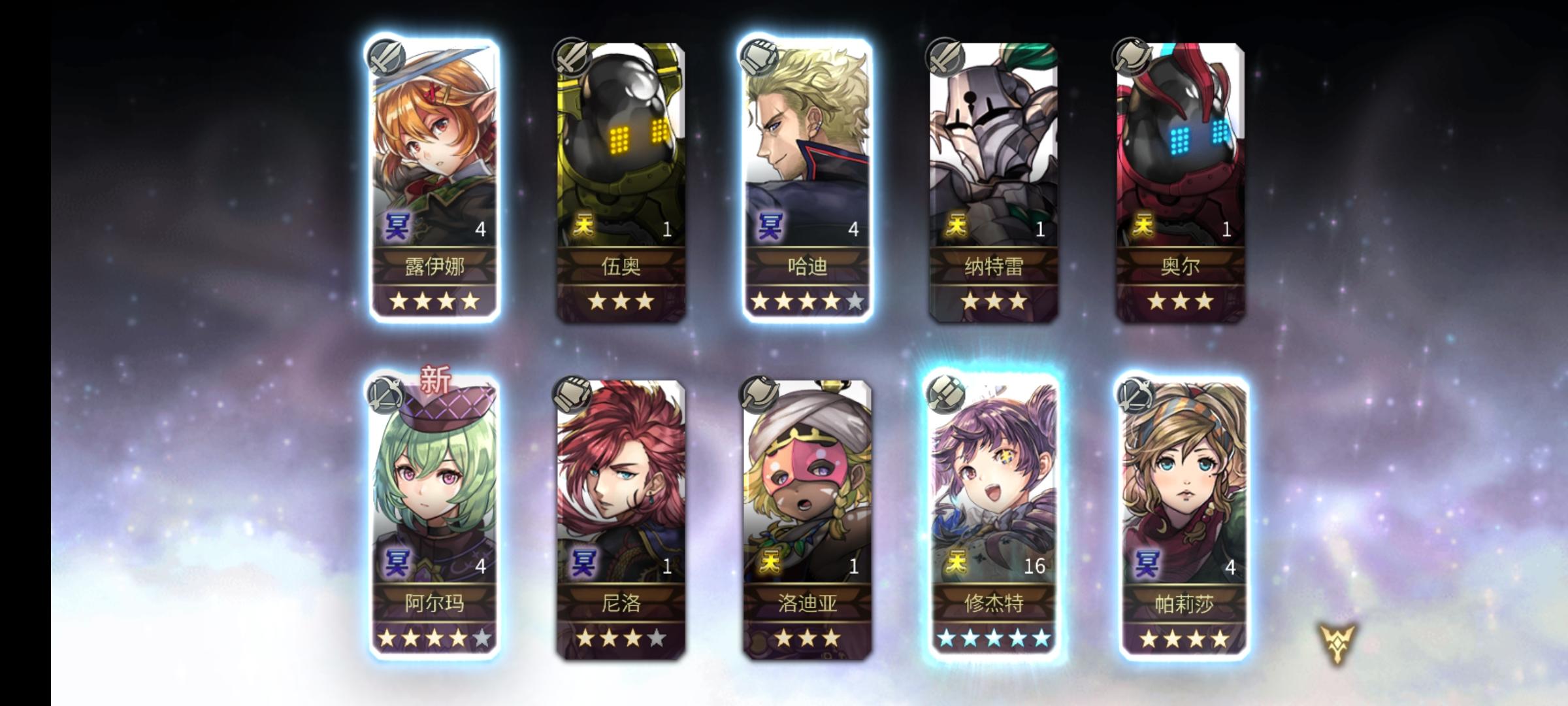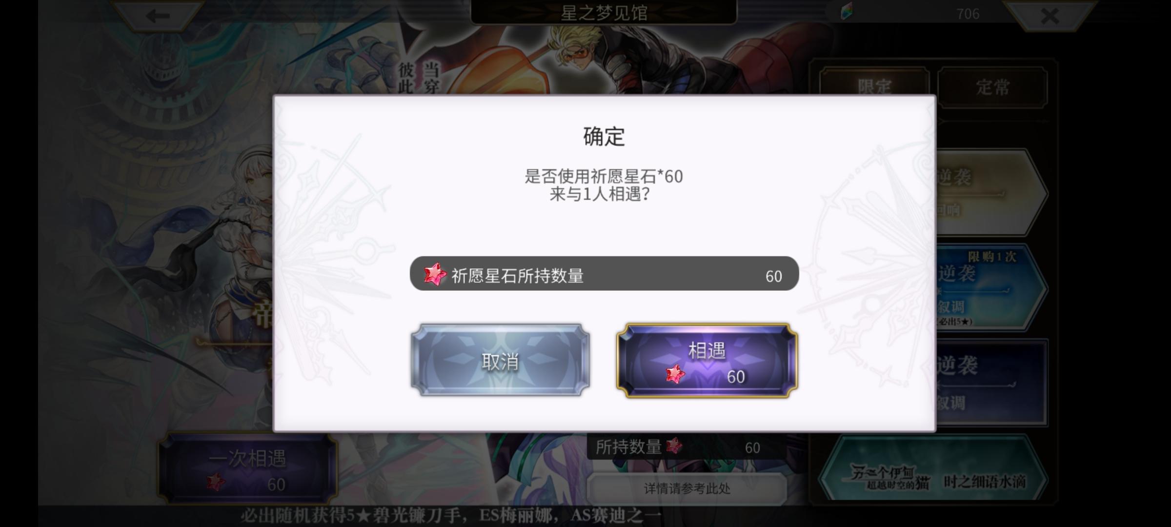 为了60个祈愿星石,来了个60连抽,漂了5个5星,ES中了俩,舒服了,开心开心