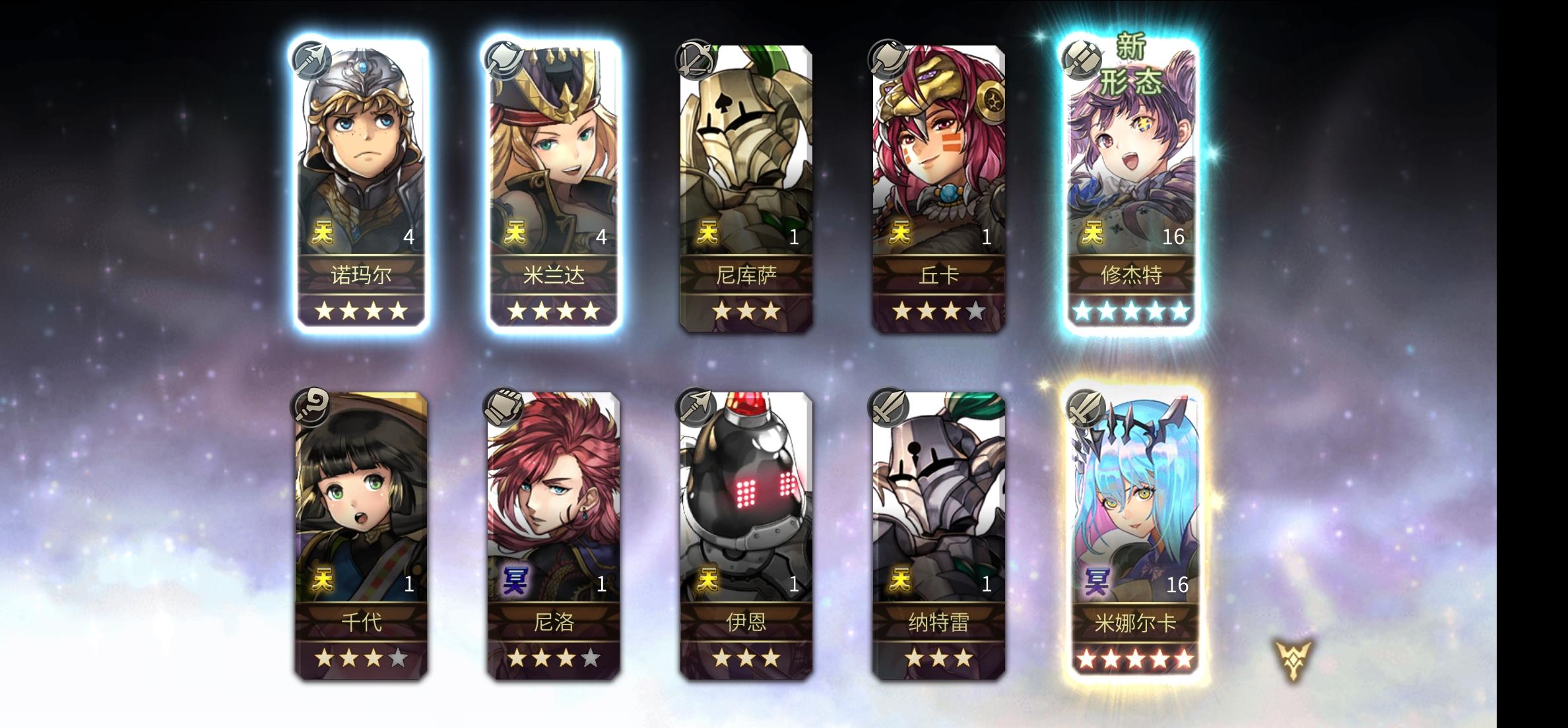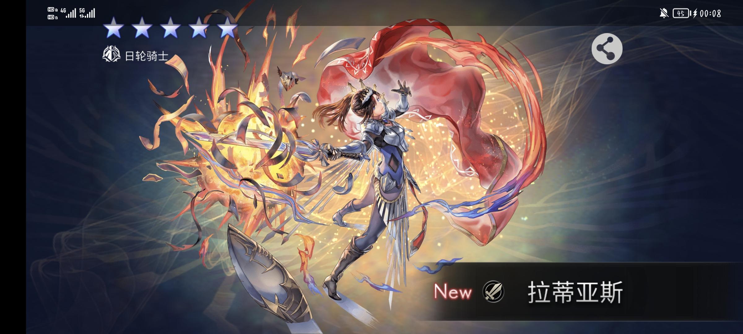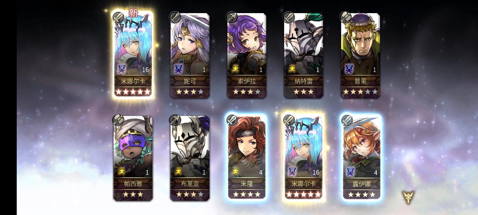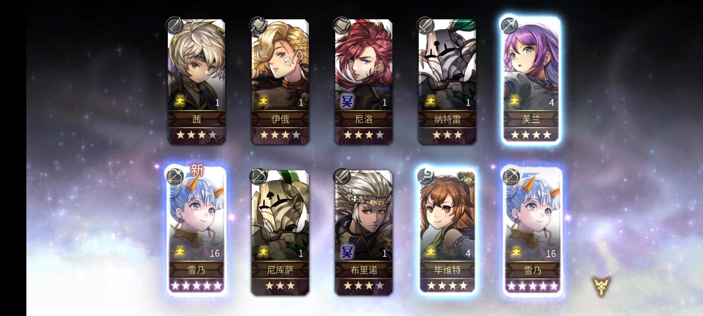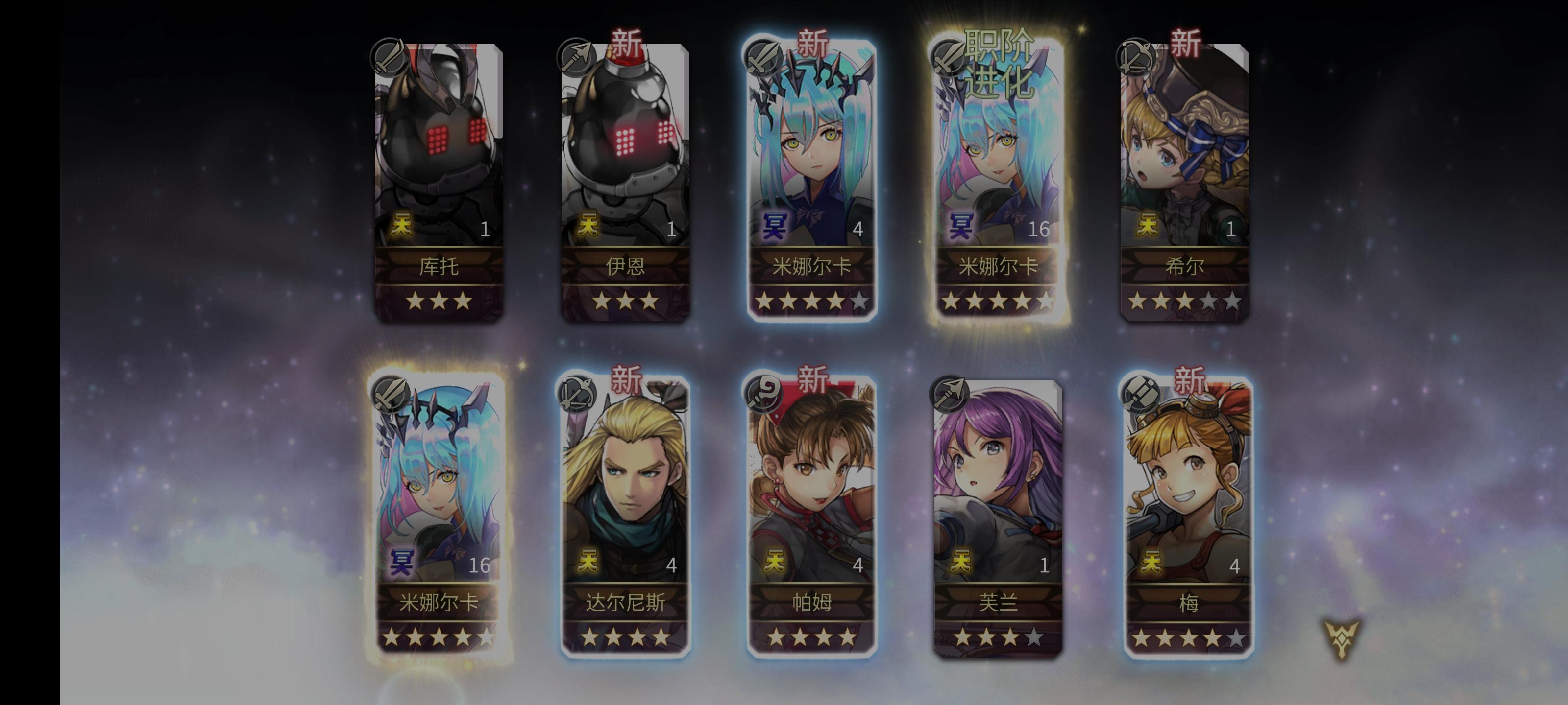 为了60个祈愿星石,来了个60连抽,漂了5个5星,ES中了俩,舒服了,开心开心
