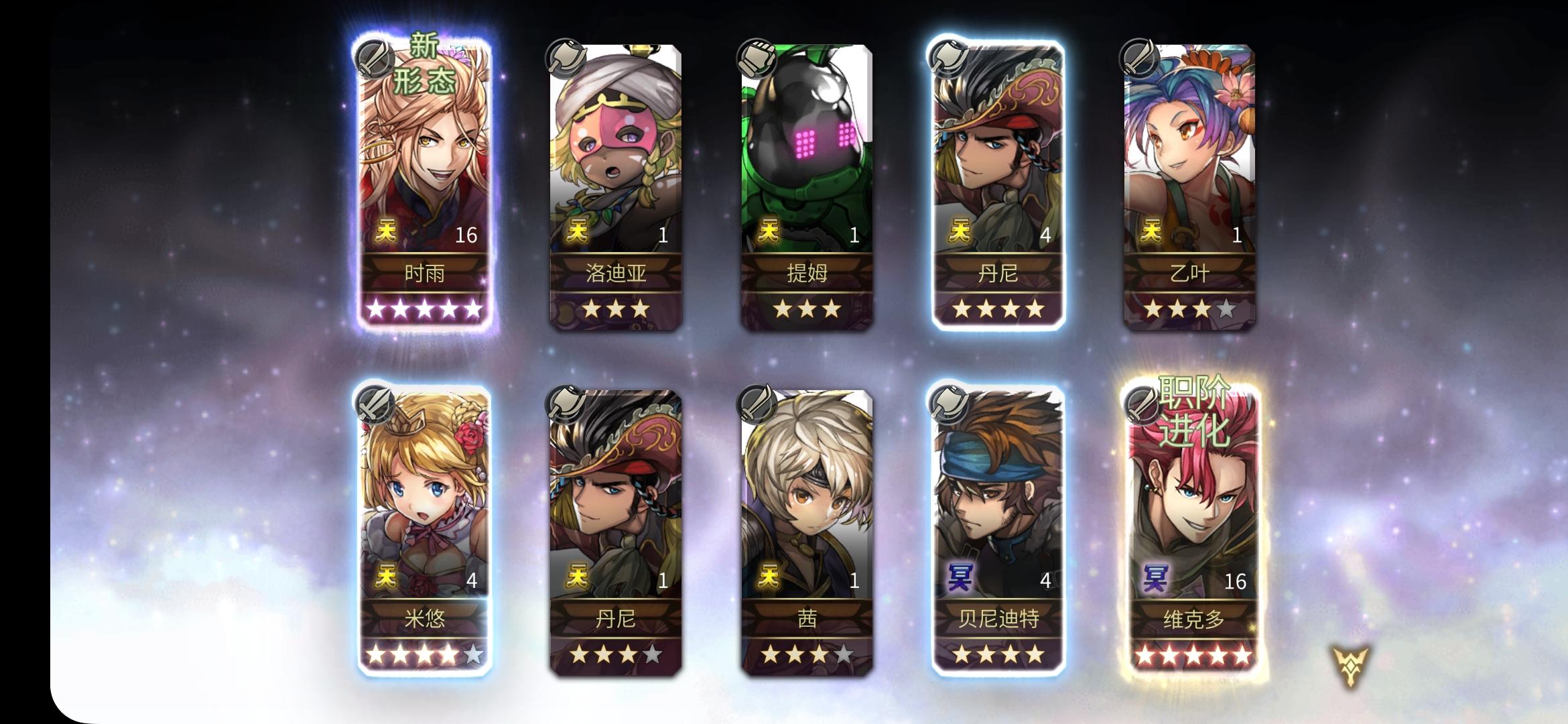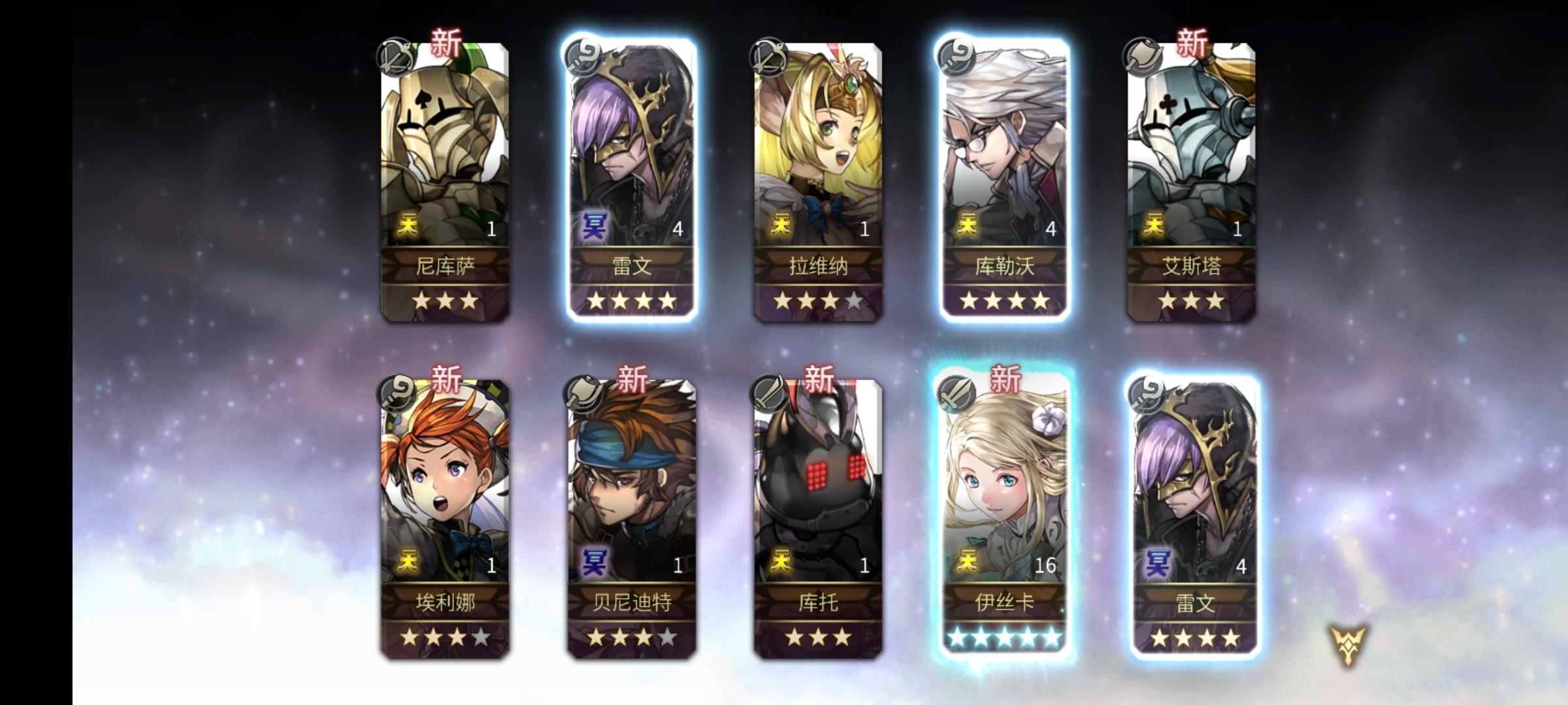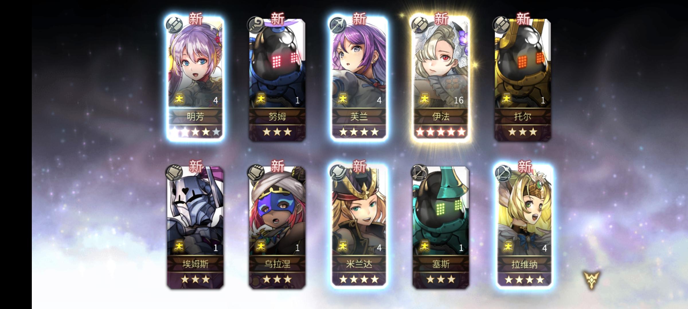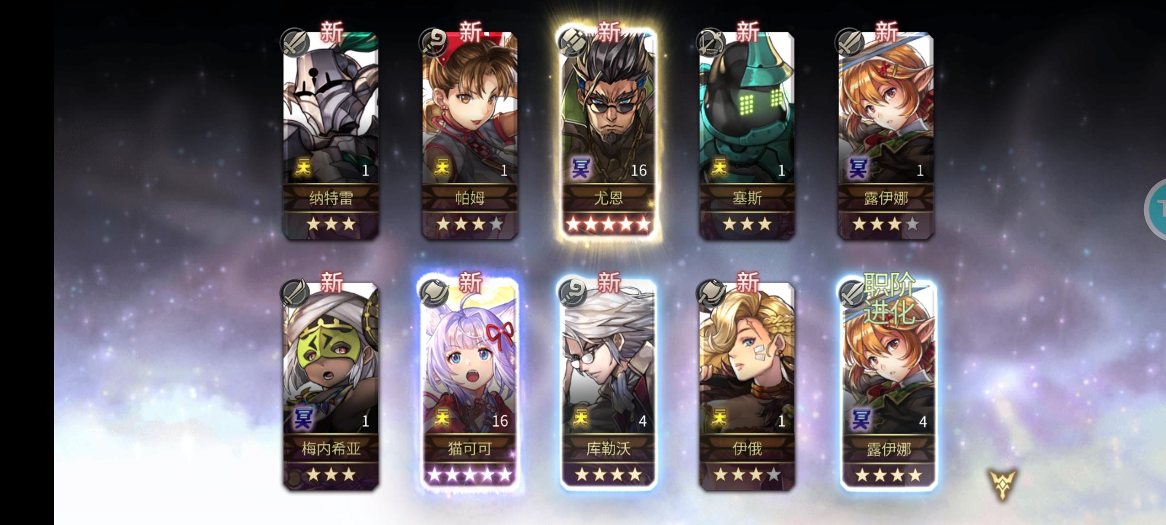 端午大吉抽卡分享今天新卡池一出,就开抽了,一直想要雷斧(雷队就差她了),结果第一个免费十连就出了两个金门,还出了个AS泽维罗。#另一个伊甸#抽卡十连
