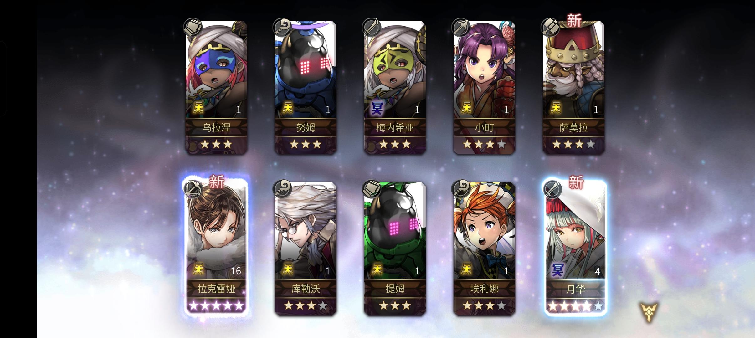 基本十发就出来了,不行就20发。当期up就出来了目前第13章,基本都是十连抽,以下是所有十连截图#抽卡十连