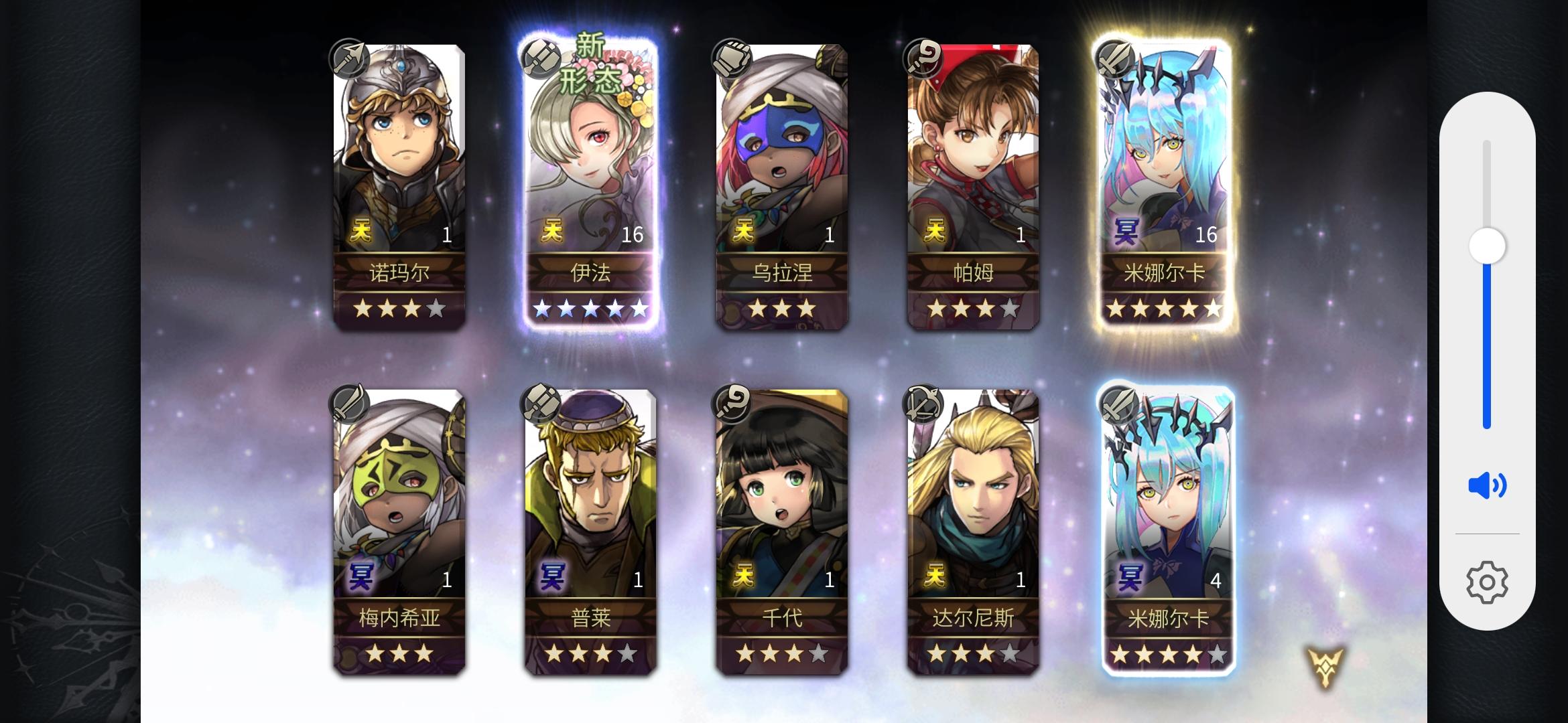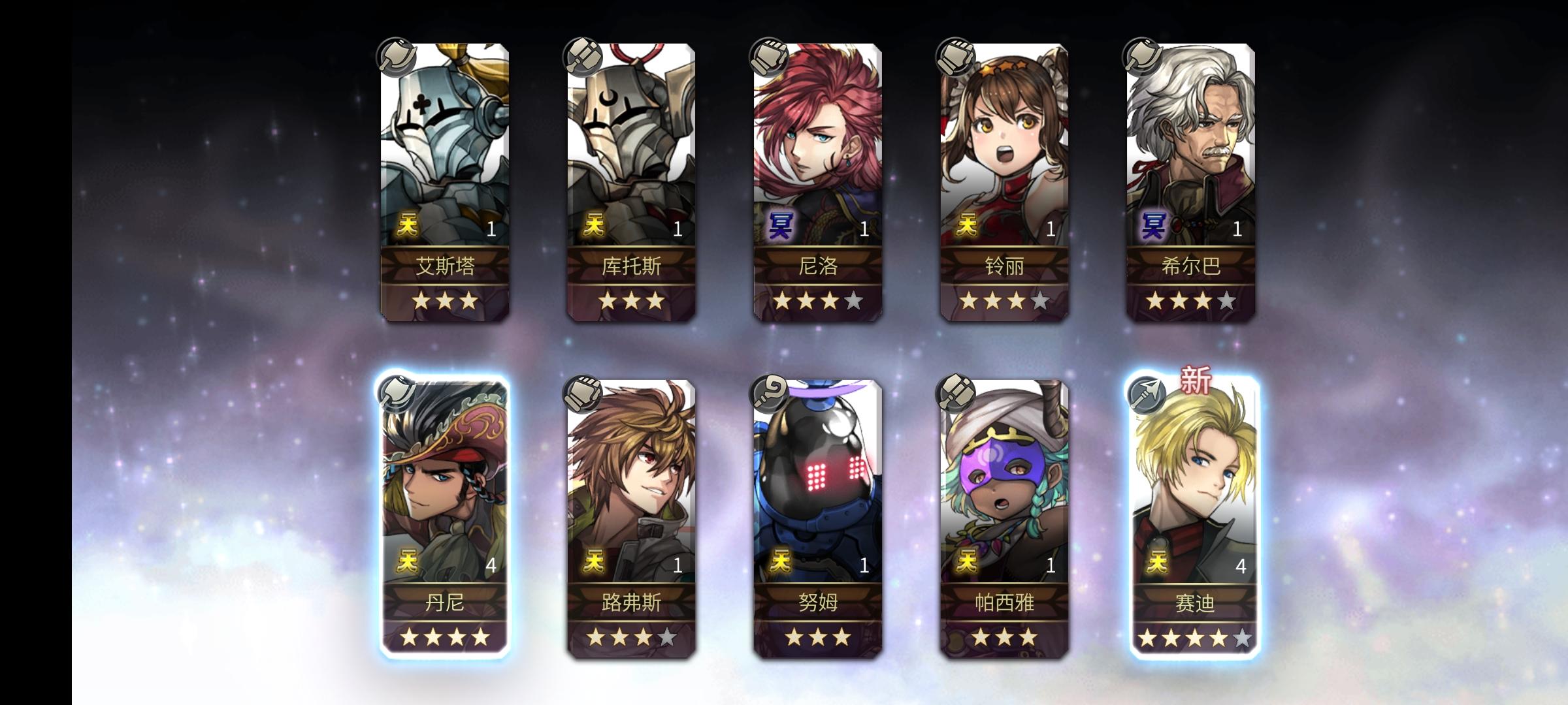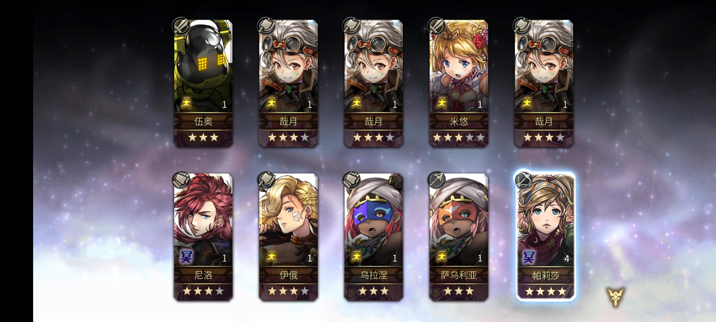 两只五星,猫咪歪出三四次五星了,正好够80天。实践证明单抽依旧有效,前天三百钻抽出阿尔玛差点让我感觉运气耗尽了