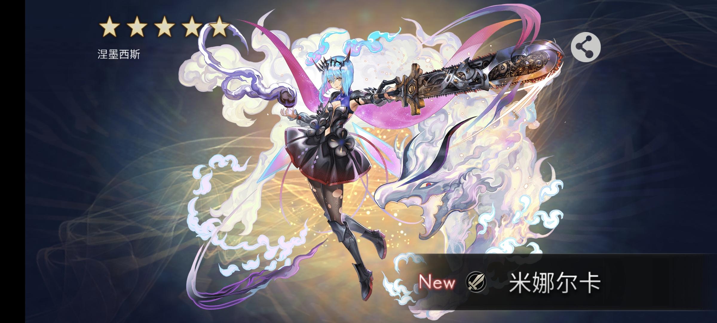 逛论坛看到很多朋友都出了电锯女,羡慕极了,更新好游戏后忍不住抽卡,没想到第一个免费十连就出了,感谢心动!