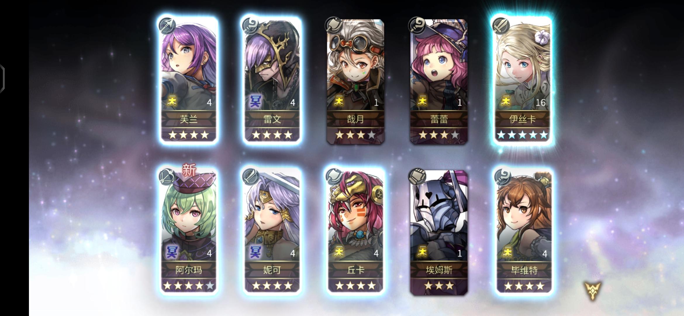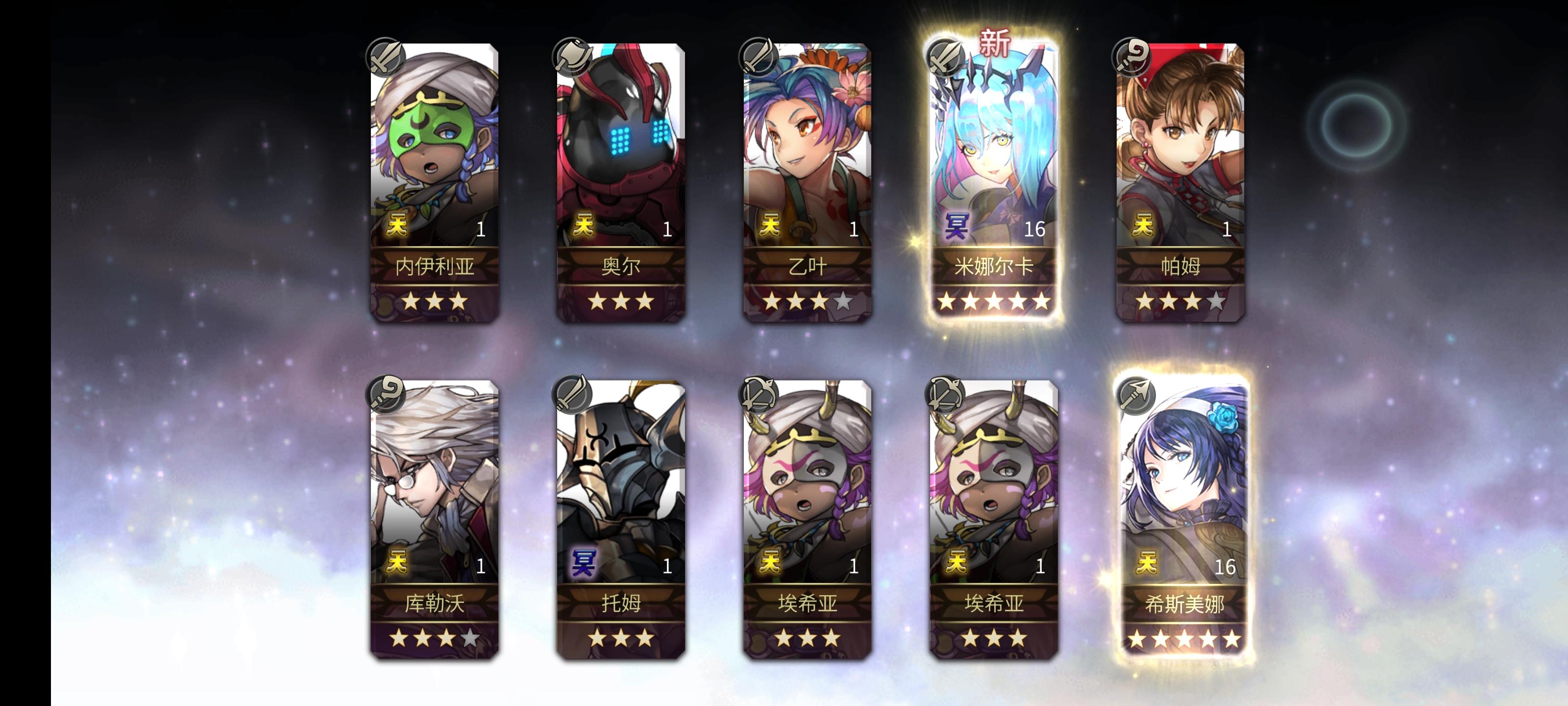 刚出卡池重逢邂逅月轮穿刺,就迫不及待的来了免费个十连试试水,本来想抽AC多娃的,看到前两个银门出了已有角色,心都凉了,然后又来了一个银门,出了霞诺,心想不是很亏,之后竟然又出了一个金门,不过歪出了AC中二,心想歪出来也不错吧,但是稍微有点遗憾,然后连续又来了一个金门,结果直接出了AC多娃,这时我感觉这次十连还挺欧的