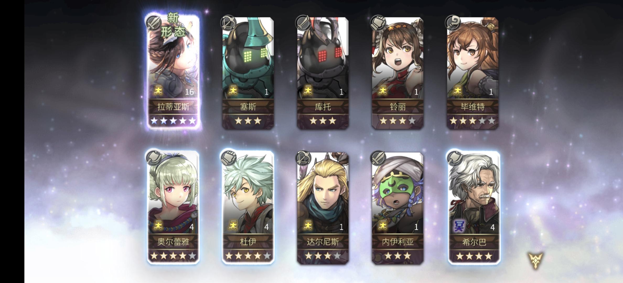 抽了4次十连,歪了一个雅典娜,还有一个4.5的中二,然后就是这些。欧算是挺欧的,就是没啥我想要的,雅典娜异节就差一个。日轮个朱诺也各差一个。光学迷彩一个异节都没有,我挺想要的。emmmmm
