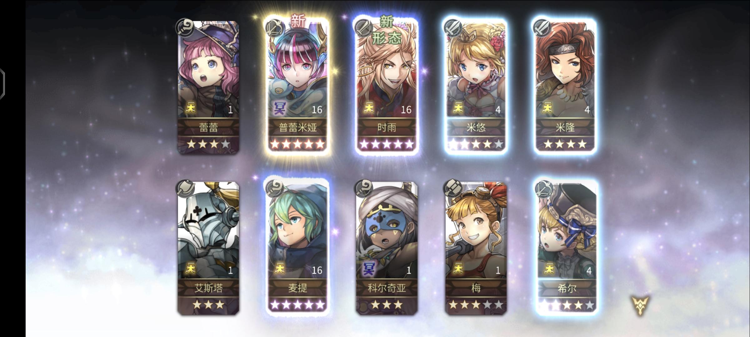 果然欧非守恒……上一次开金门要追溯到好几个月前了,这一次也是第一次一发免费10连开了3个五星