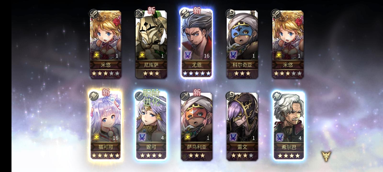 一发10连,两个本体,终于有国王了,收工。