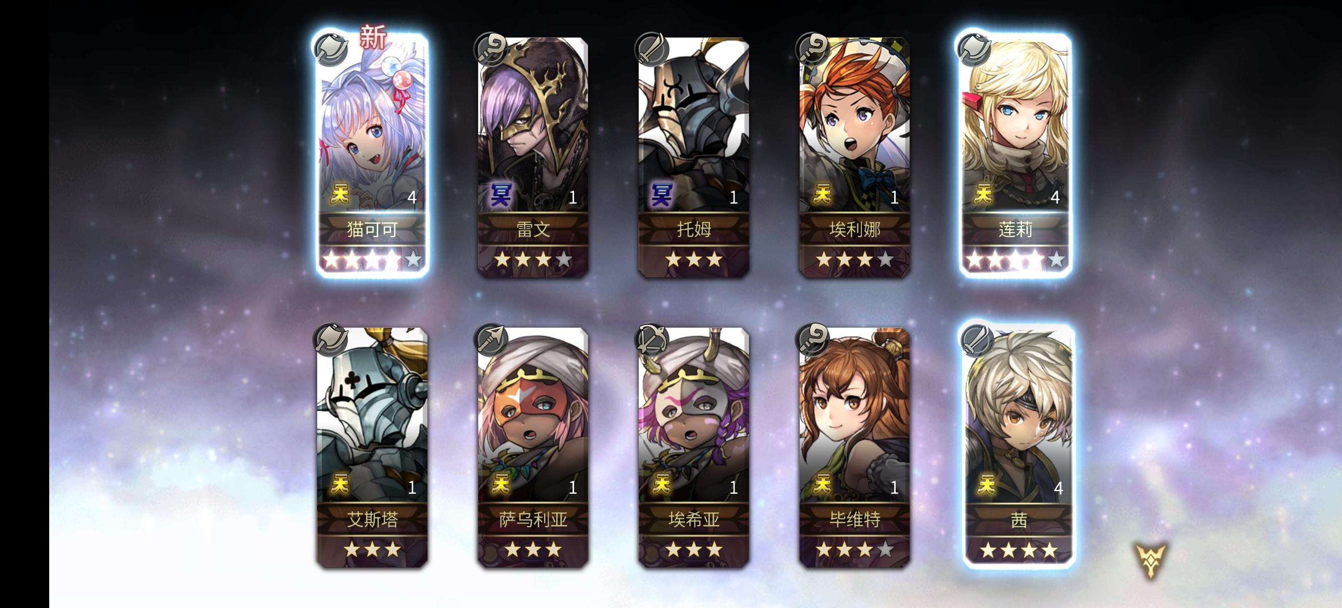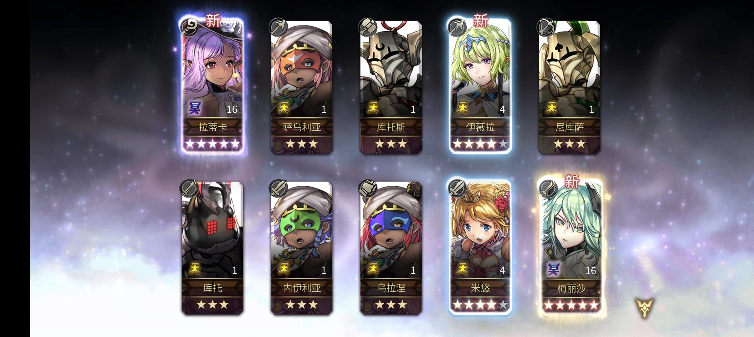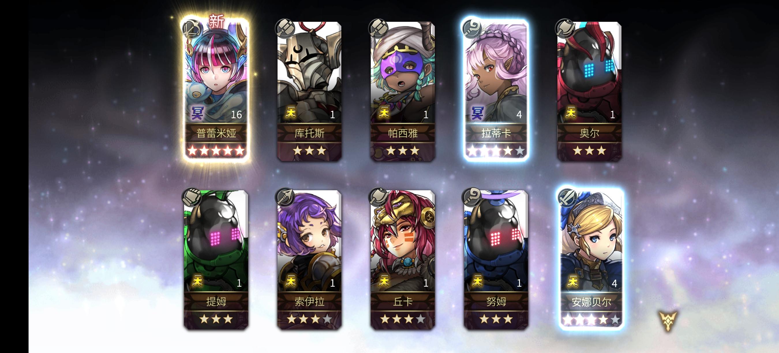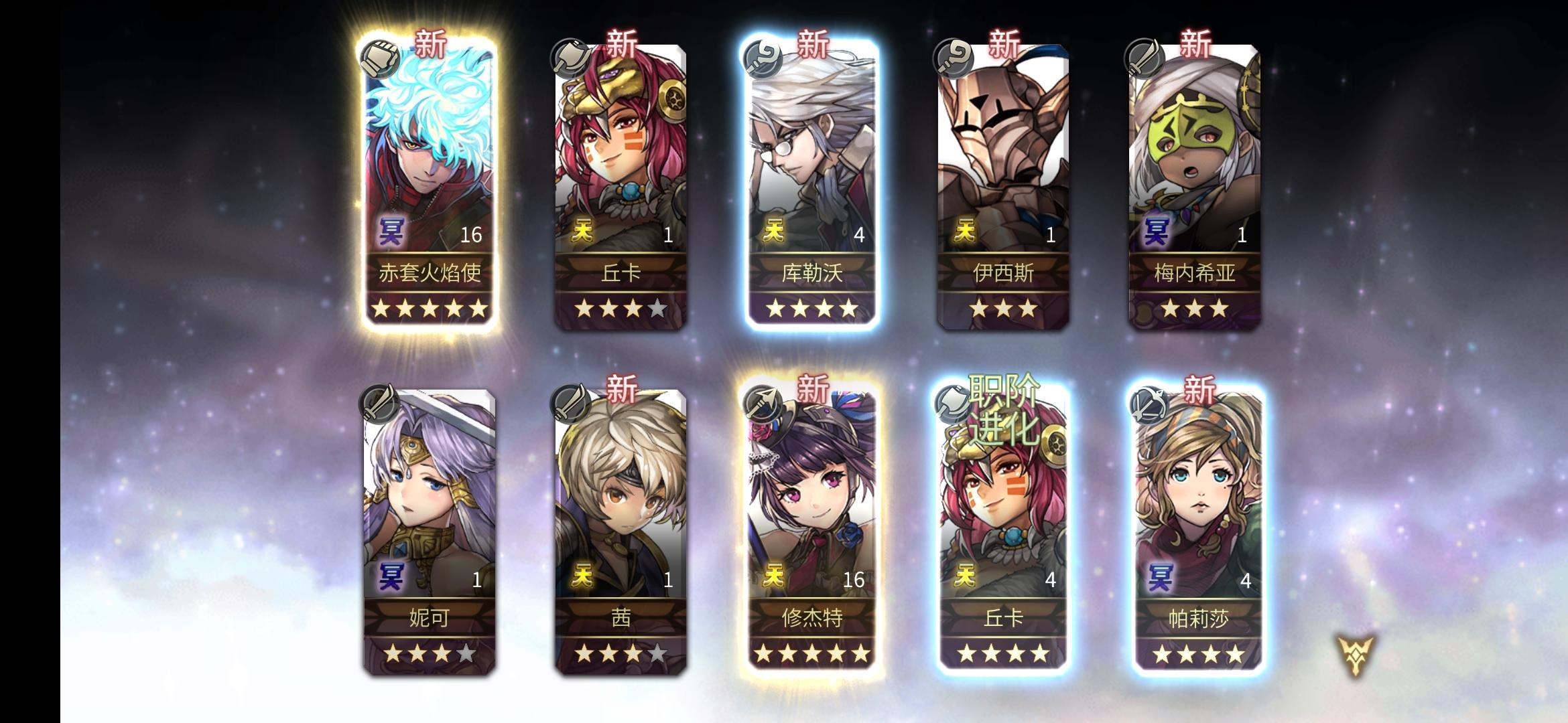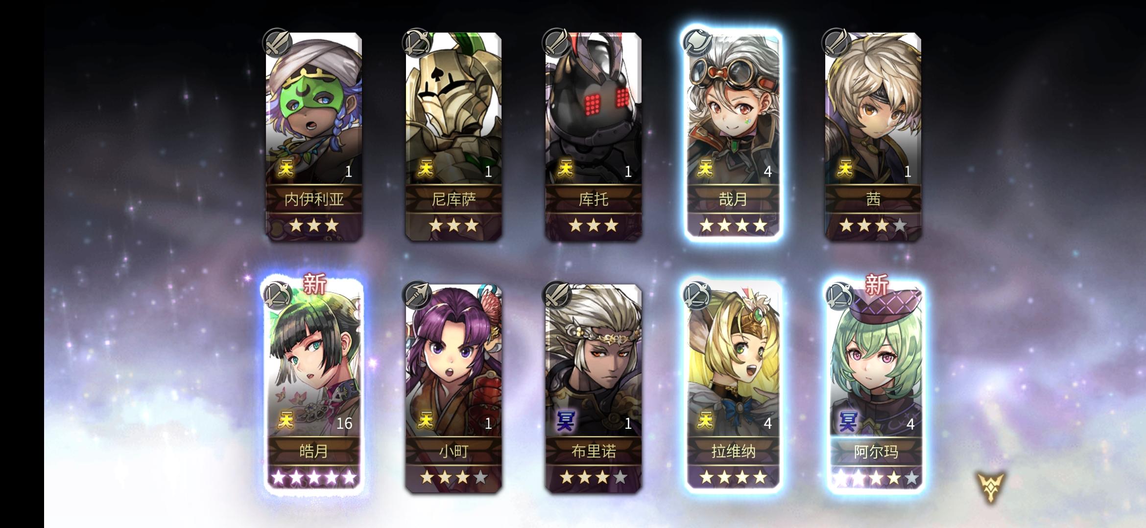 昨昨晚灵感爆发,新做了个小号,出了三个五星,想着运气接着延续一下,跑到大号来个10连发,中了个 As皓月,还有一个阿尔玛
