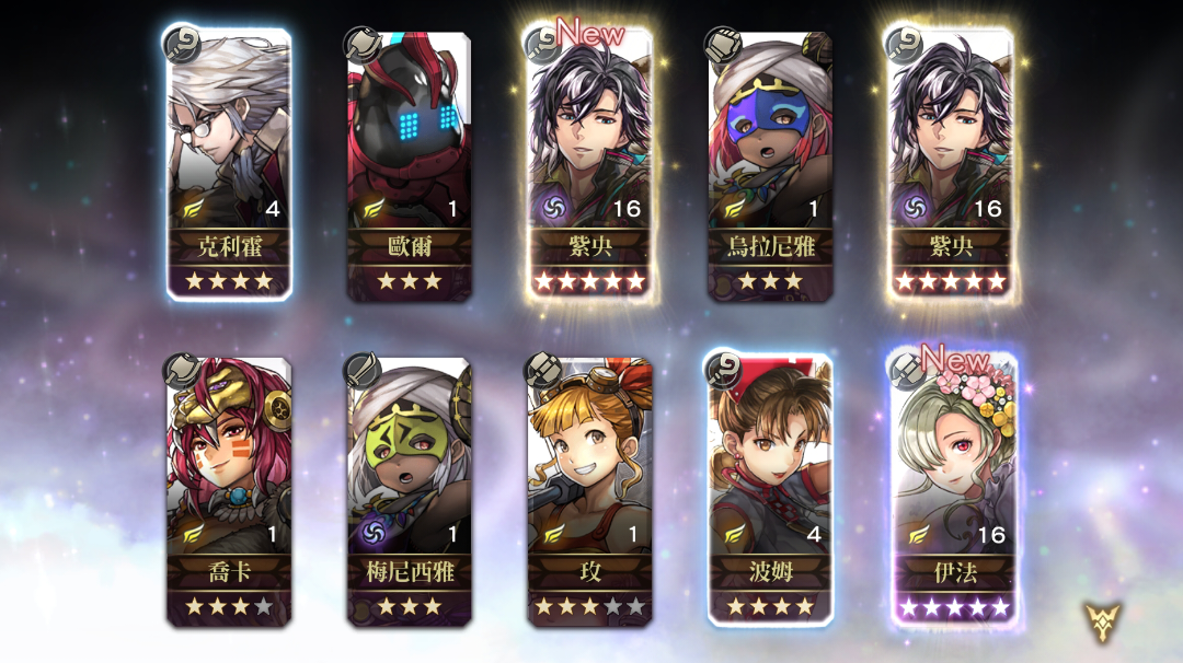 免费的十连啊,,,就是没有上次爆的五星多,都是四星
