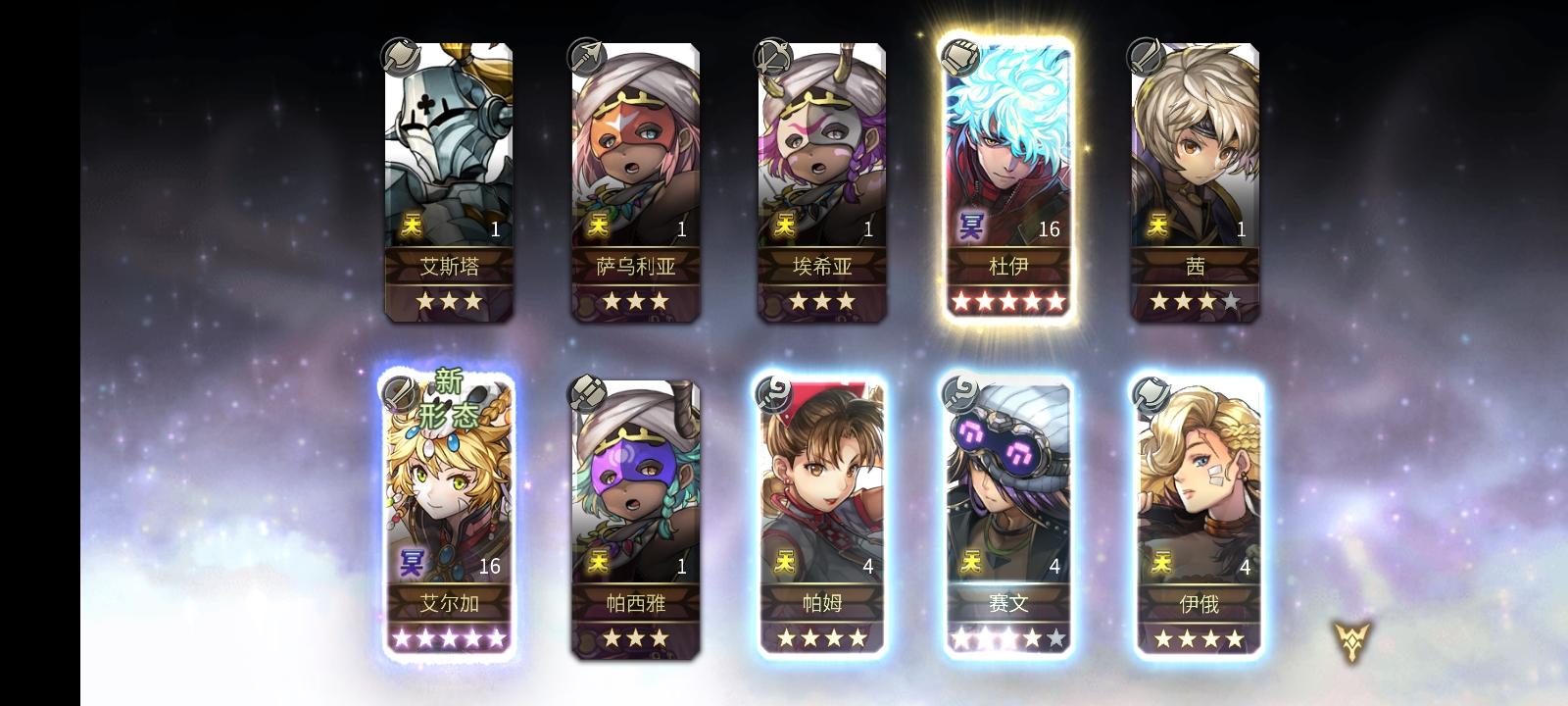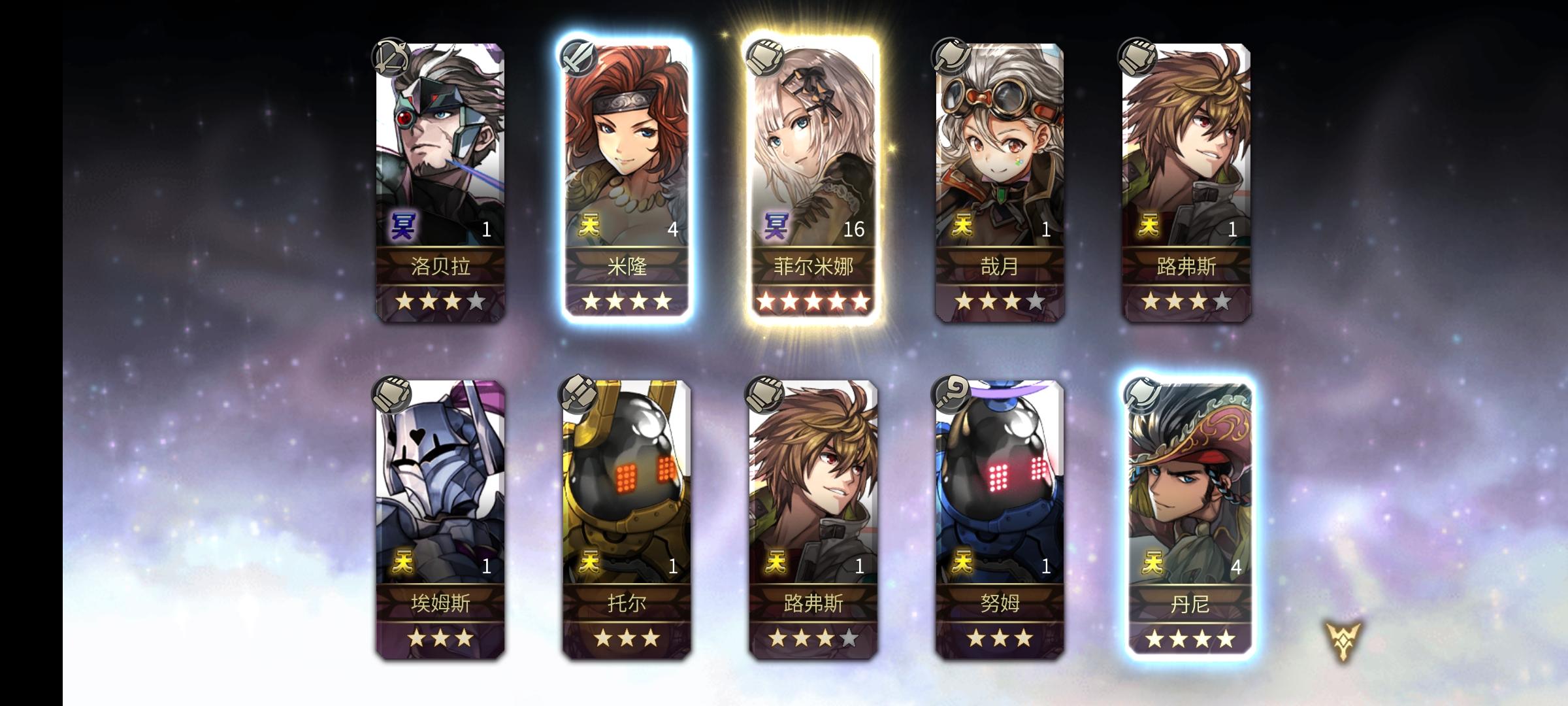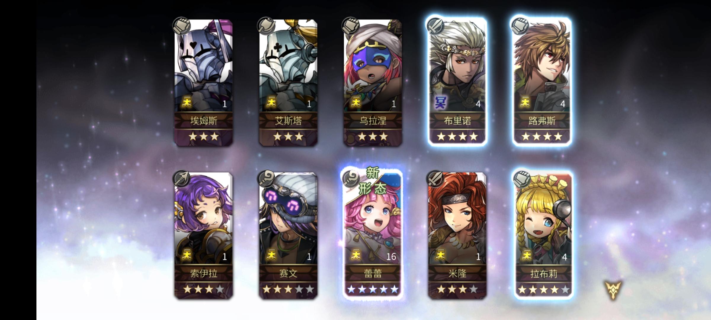 从火箭过后up就没出个五星,前两天四千出了四星阿鲁玛就剩一千石头,反正一发十连出不出无所谓ㅍ_ㅍ我还是想要个人鱼弓,希望这次送的十连能出吧
