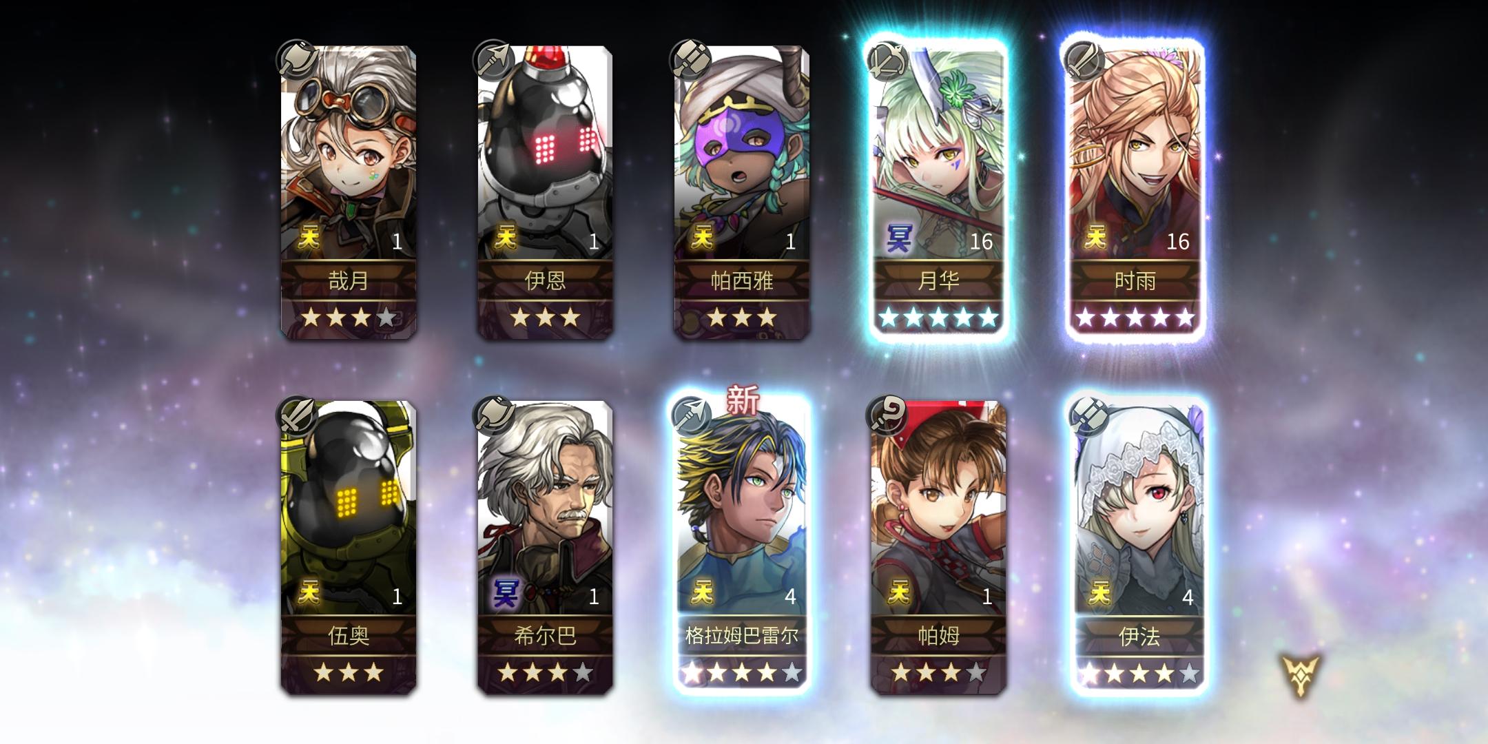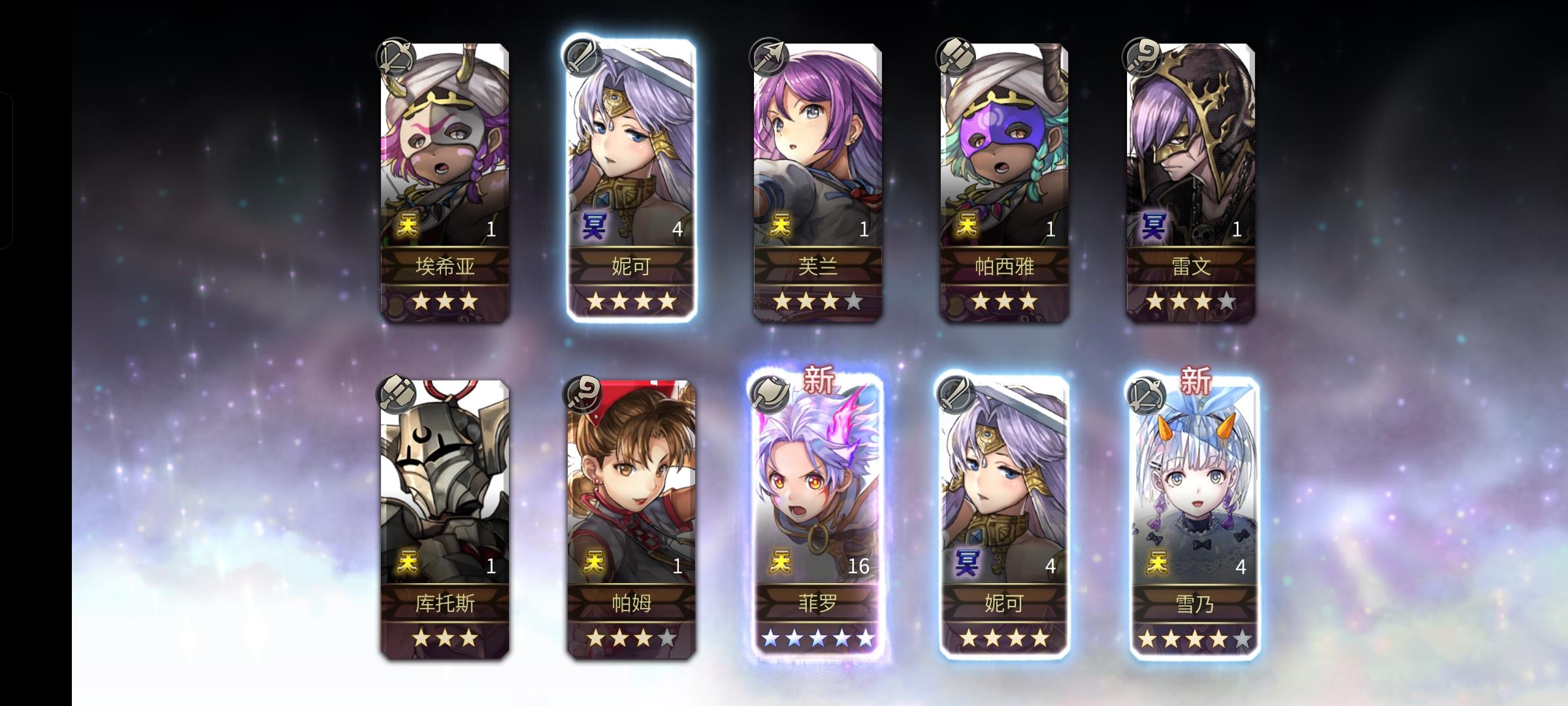 一发十连结束,最近五个新出的角色一共花了7000钻,早知道不肝了。