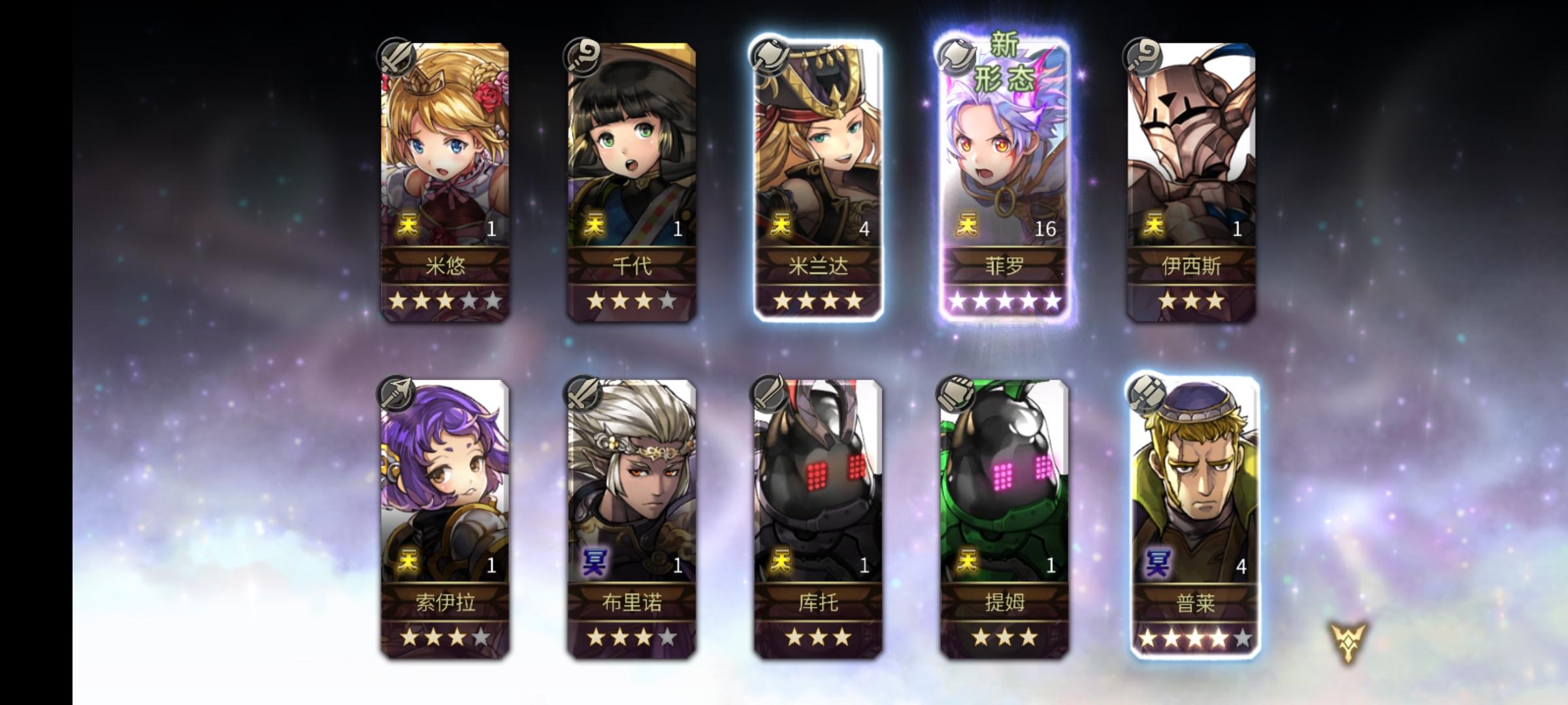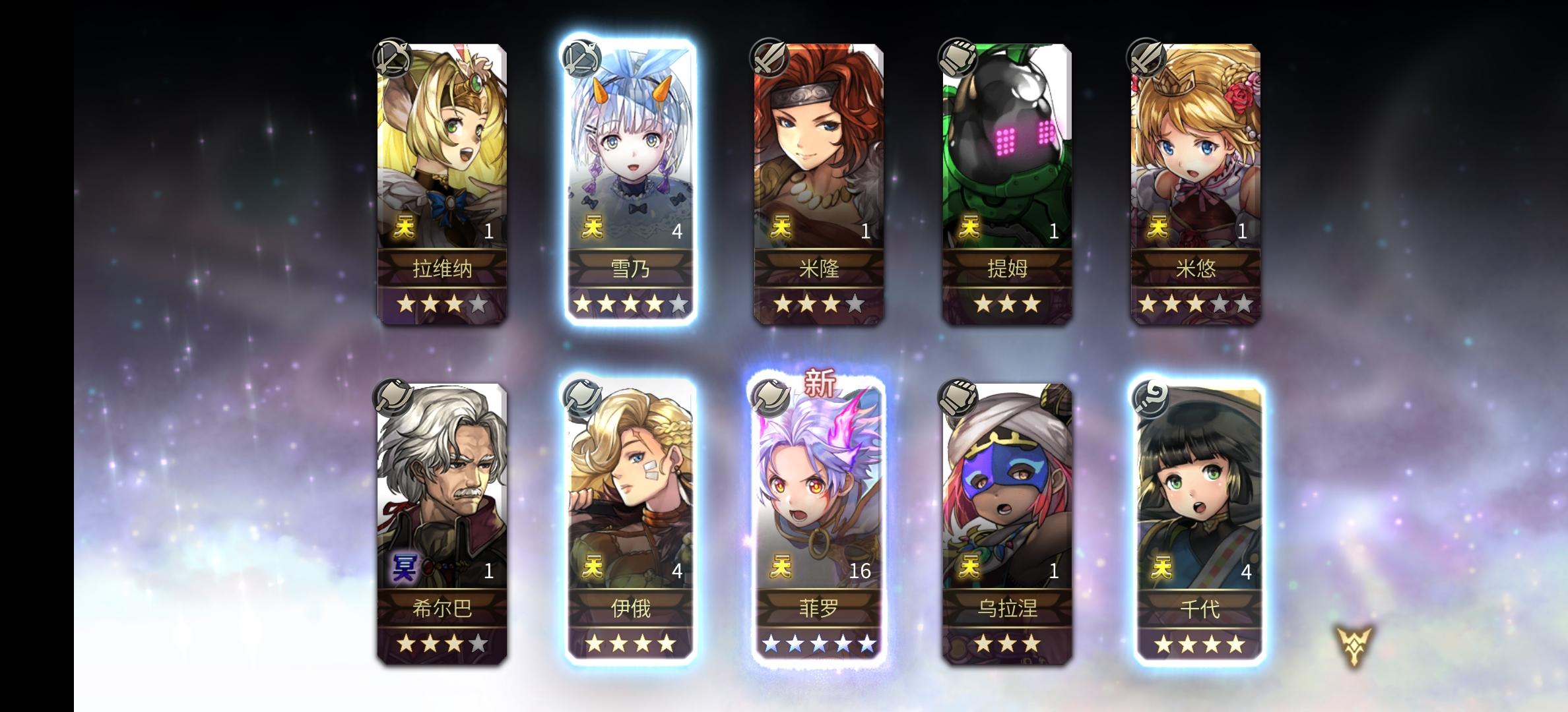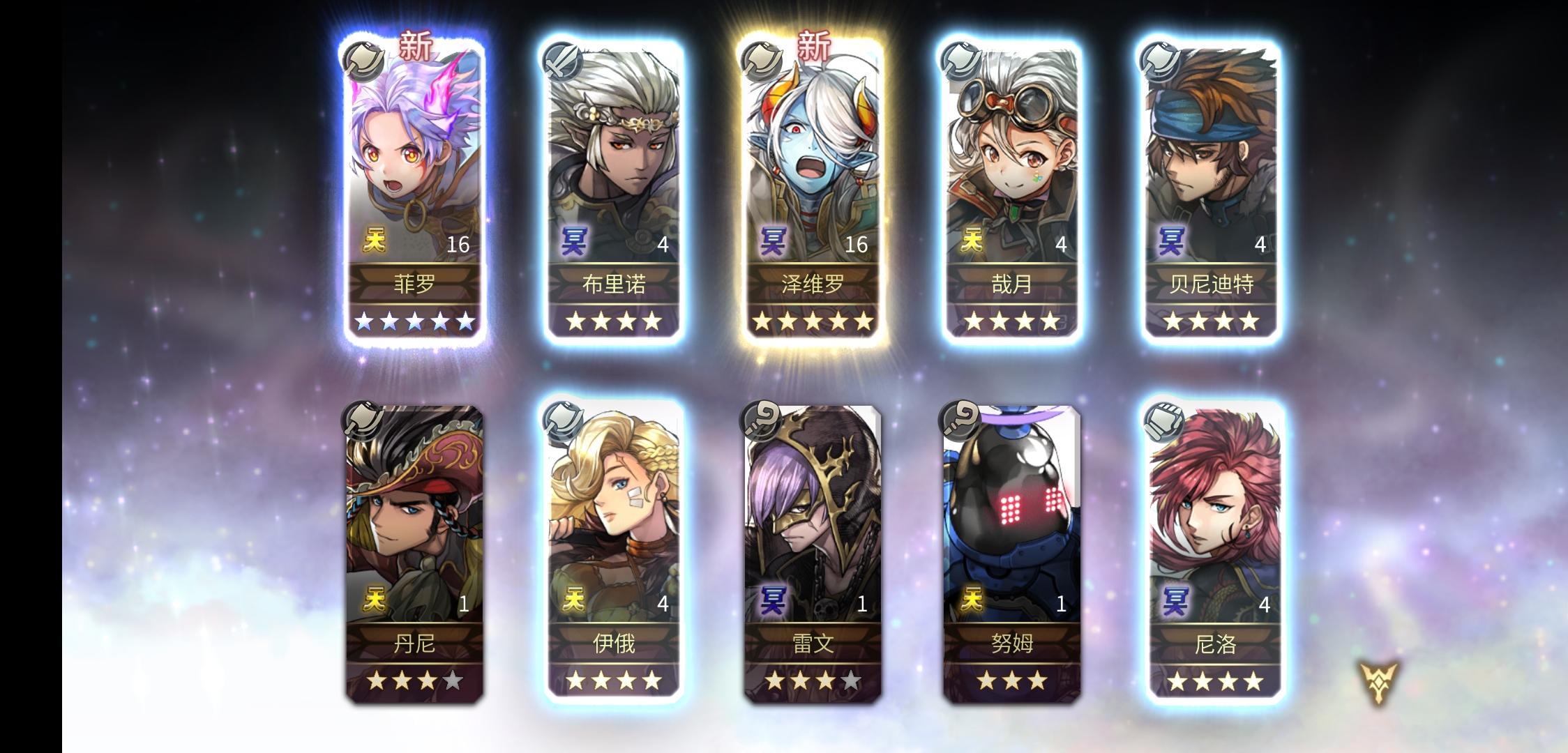抽卡还是有玄学的,先放一个伯特兰在前排和她对话,然后一个10连入魂