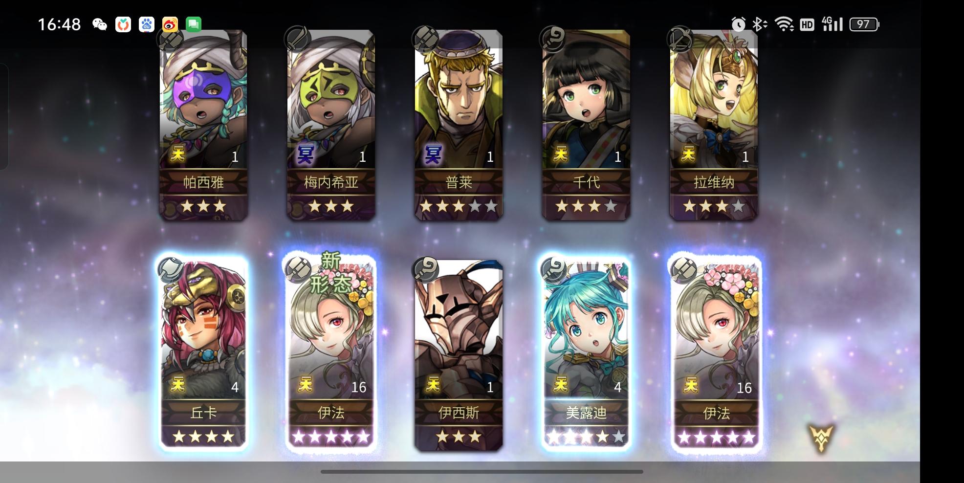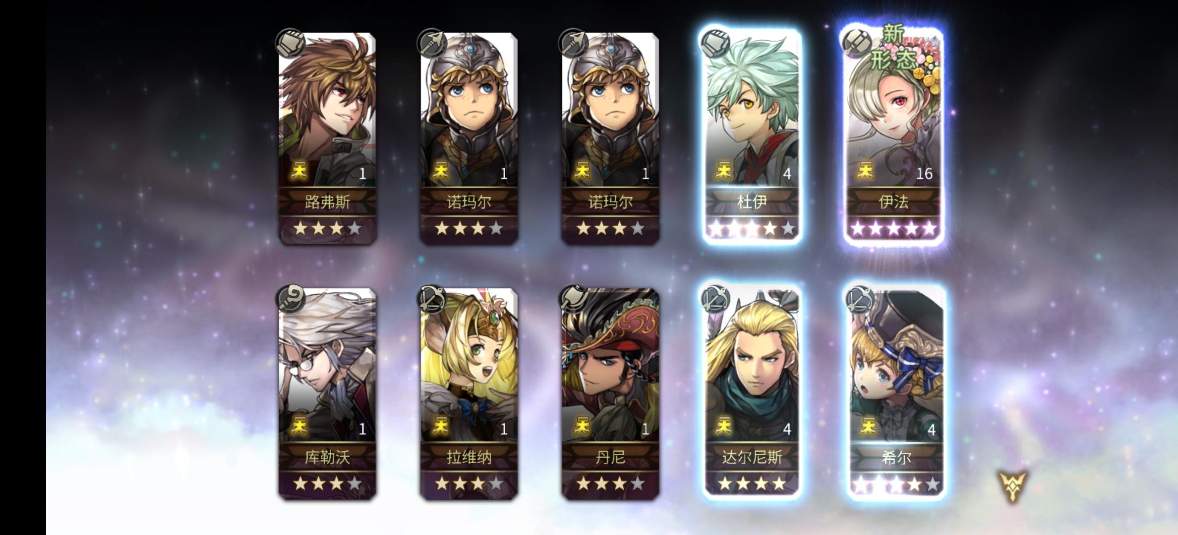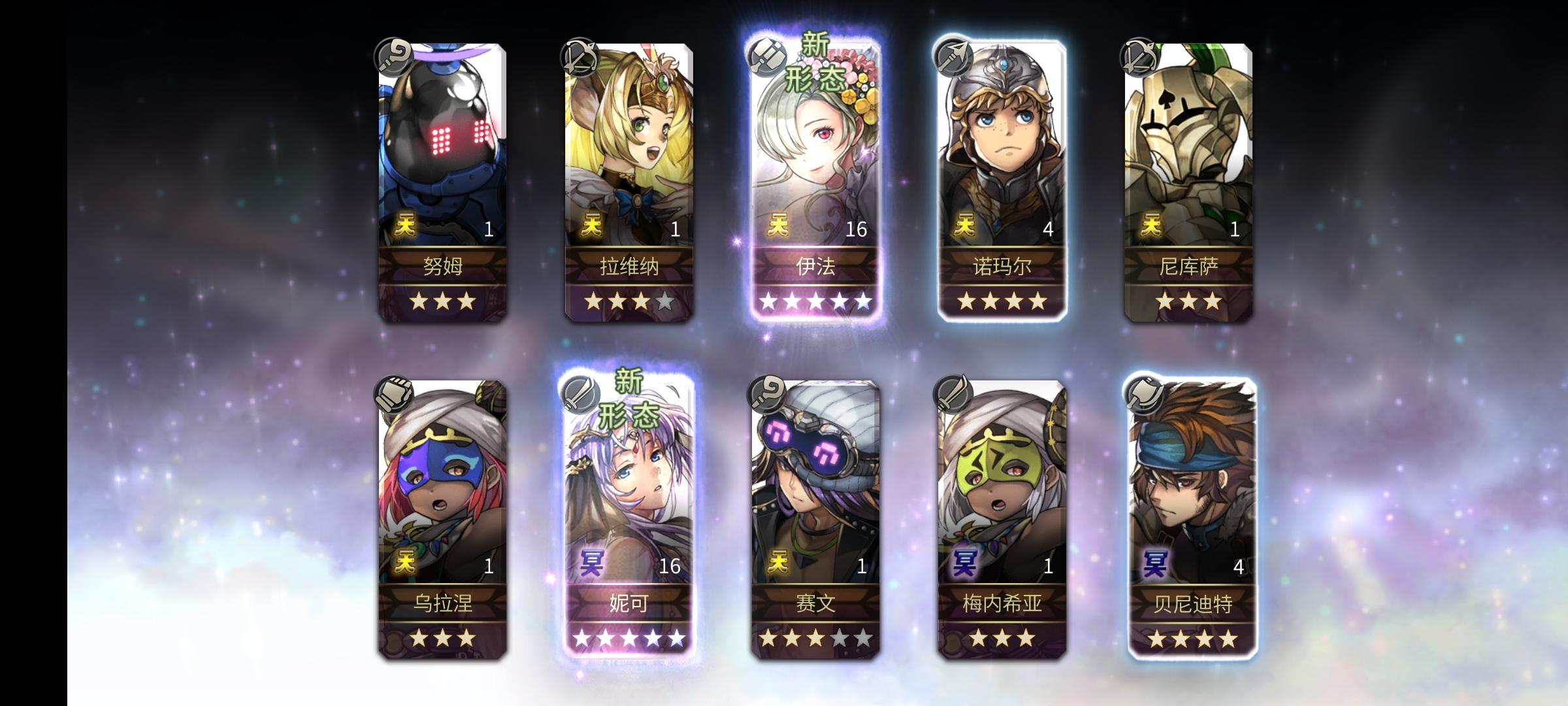 前面60发颗粒无收,就一个new的4星伊法还是60发出的,咬咬牙还是抽到了。但是没有剩下丁点石头了。