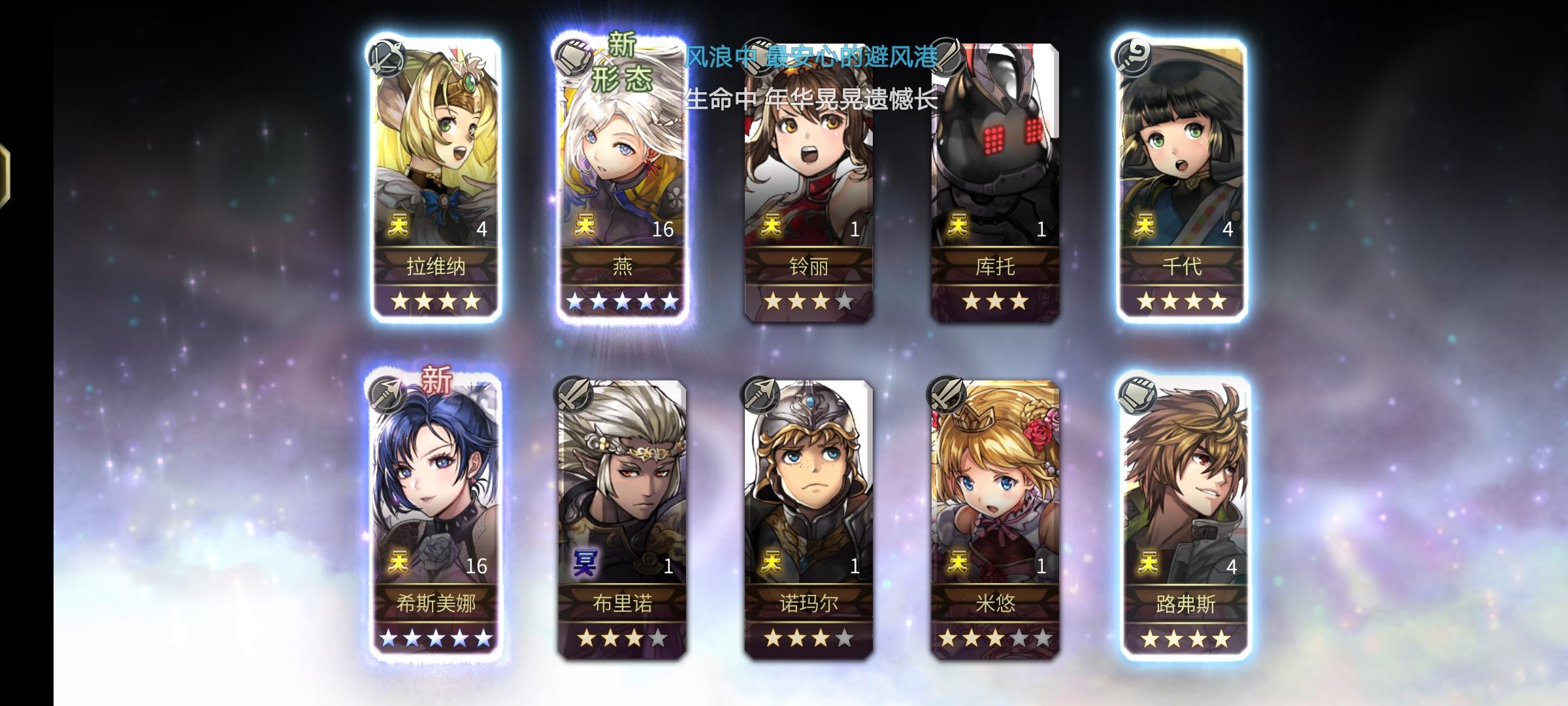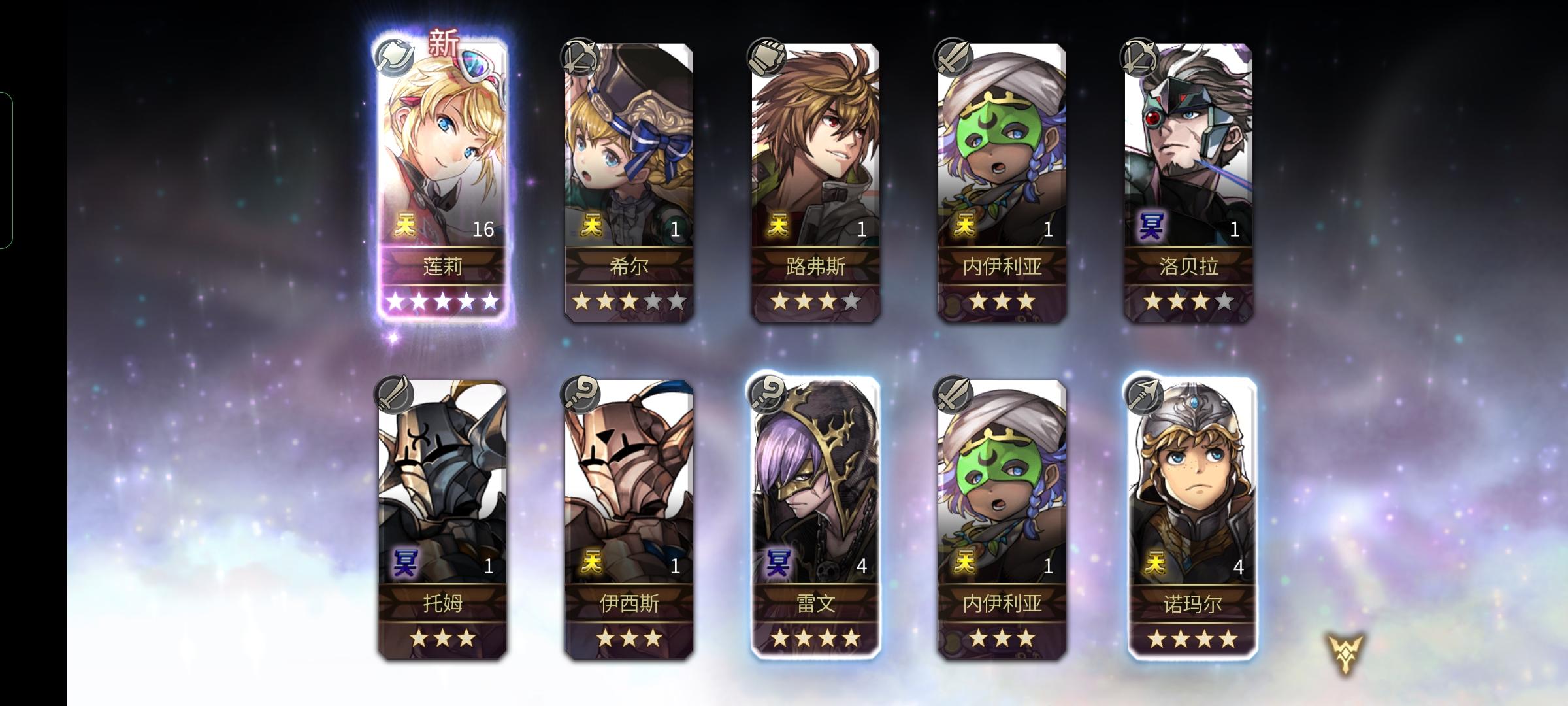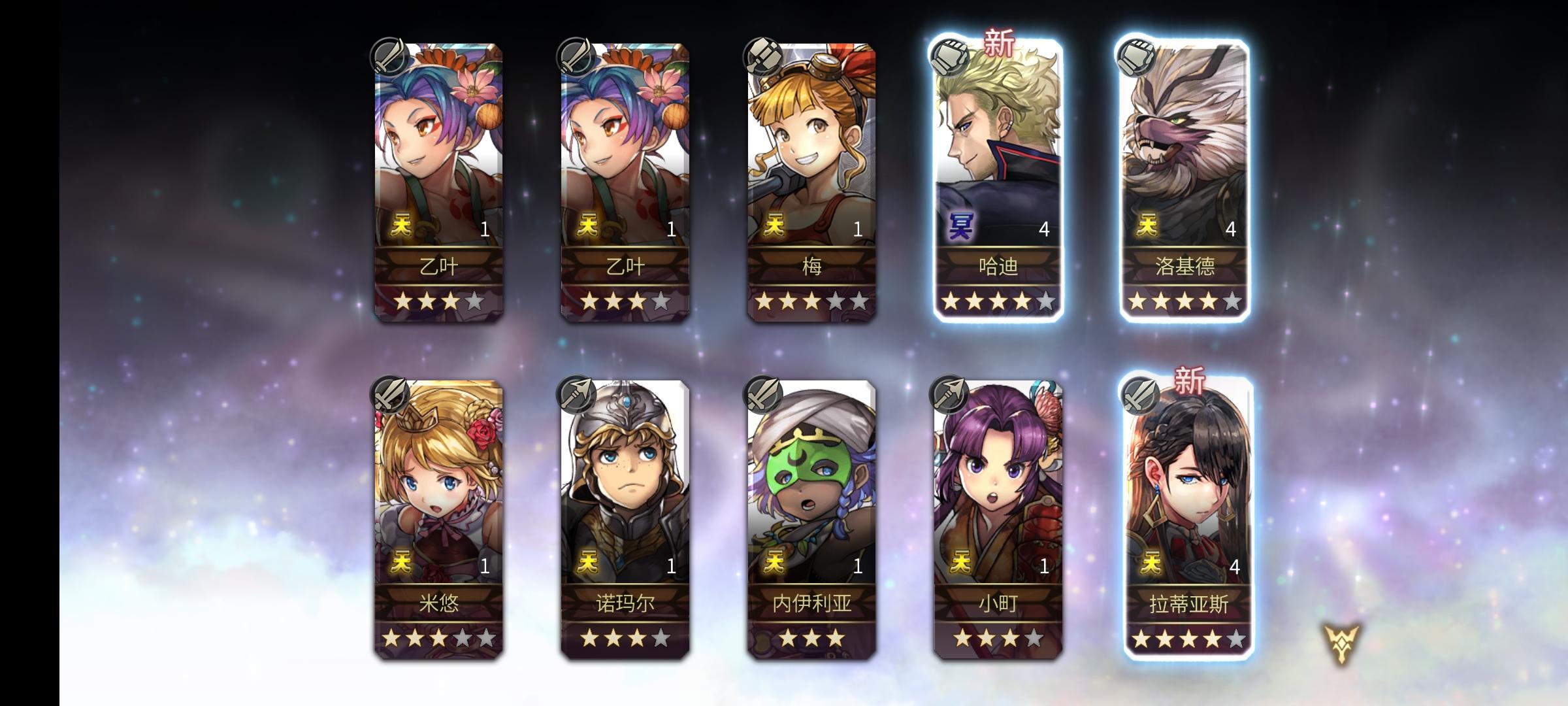 图片顺序即抽卡顺序,第二发十连就出了5星希斯美娜,可想要泰坦妹,所以继续。断断续续总计80抽,就没泰坦妹,4星泰坦妹都没,也没能歪个想要的(军师),没什么钻了,先缓缓,桔梗池子出来后看情况再抽下 PS:想翻个泰坦妹图片首页都没翻到,就一个像素图可以考虑借来做封面,还发不全 难受