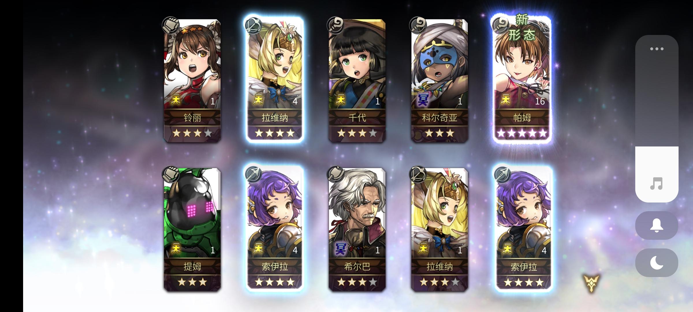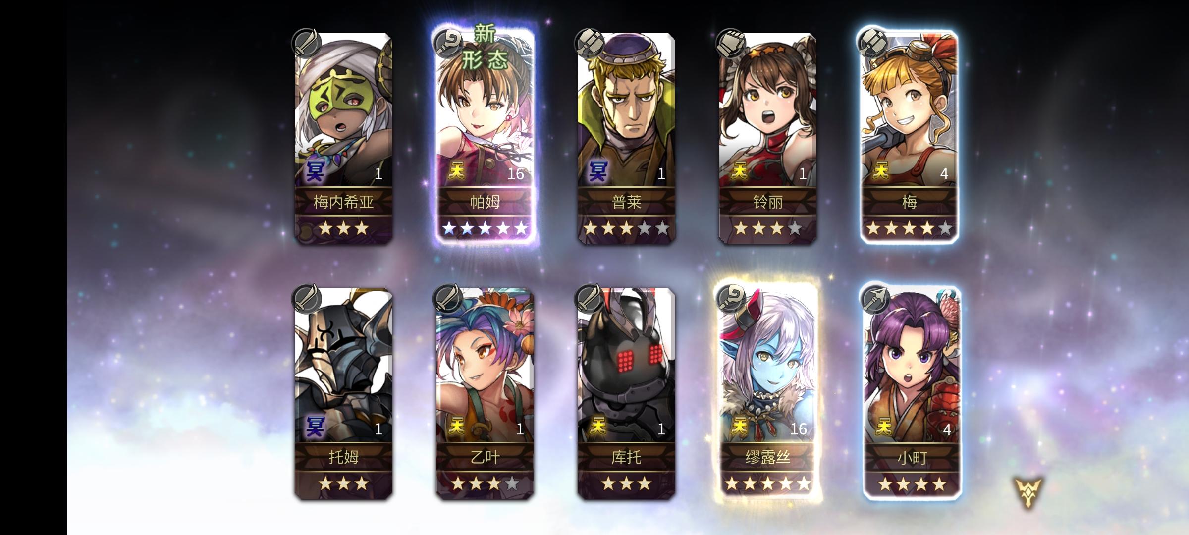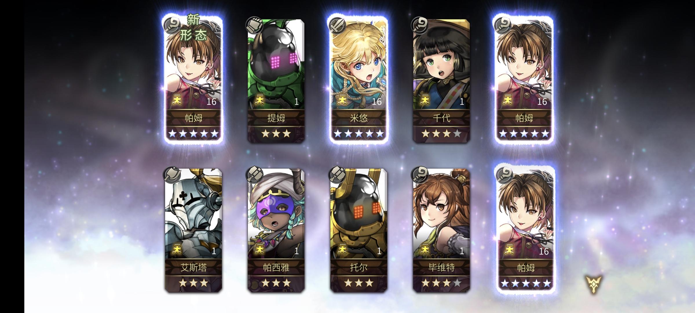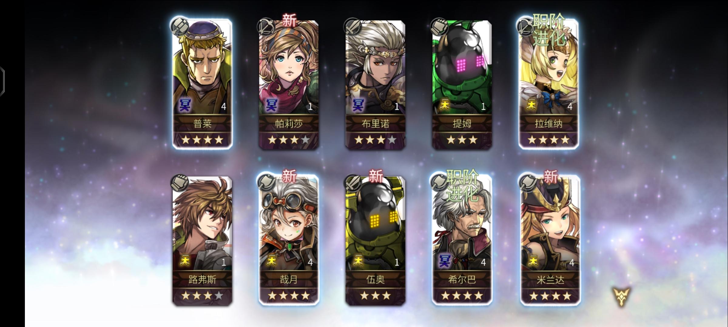 刚入坑半个多月,主线才打到30章,之前明芳两个10连就出了明芳一个5星,磕磕碰碰后面才有点上手会玩一点。攒了这么久钻看着异域10倍经验才忍不住抽卡了。。。还好还在萌新保护期