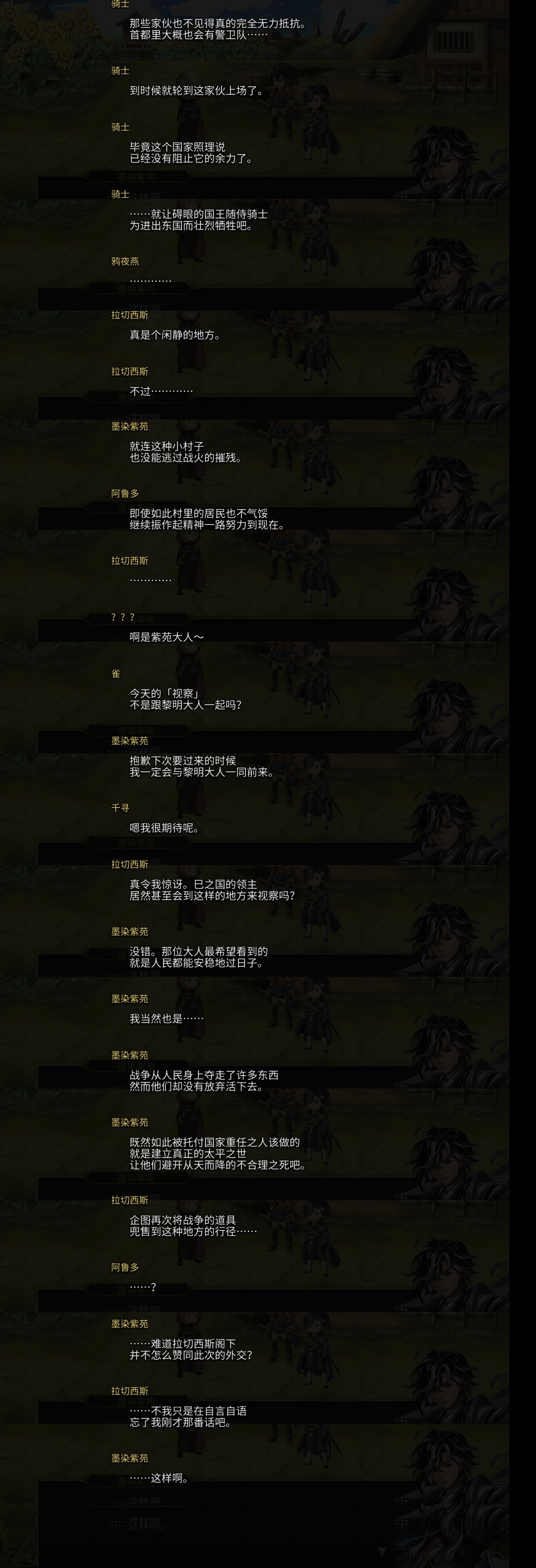 量大管饱,爽吃!!!谁懂边吃饭边看猫游剧情的快乐?本身作为东方外典的dlc,剧情质量非常的高,跟后日谈的量差不多。还见到了老朋友拉切西斯,太伟大了,冒着巨大的风险,也不得不执行任务。我们的ACAS紫苑,出神入化的解决了本次的危机,不得不啧啧称奇.(这好像是唯一一个没有本体出场的acas剧情)