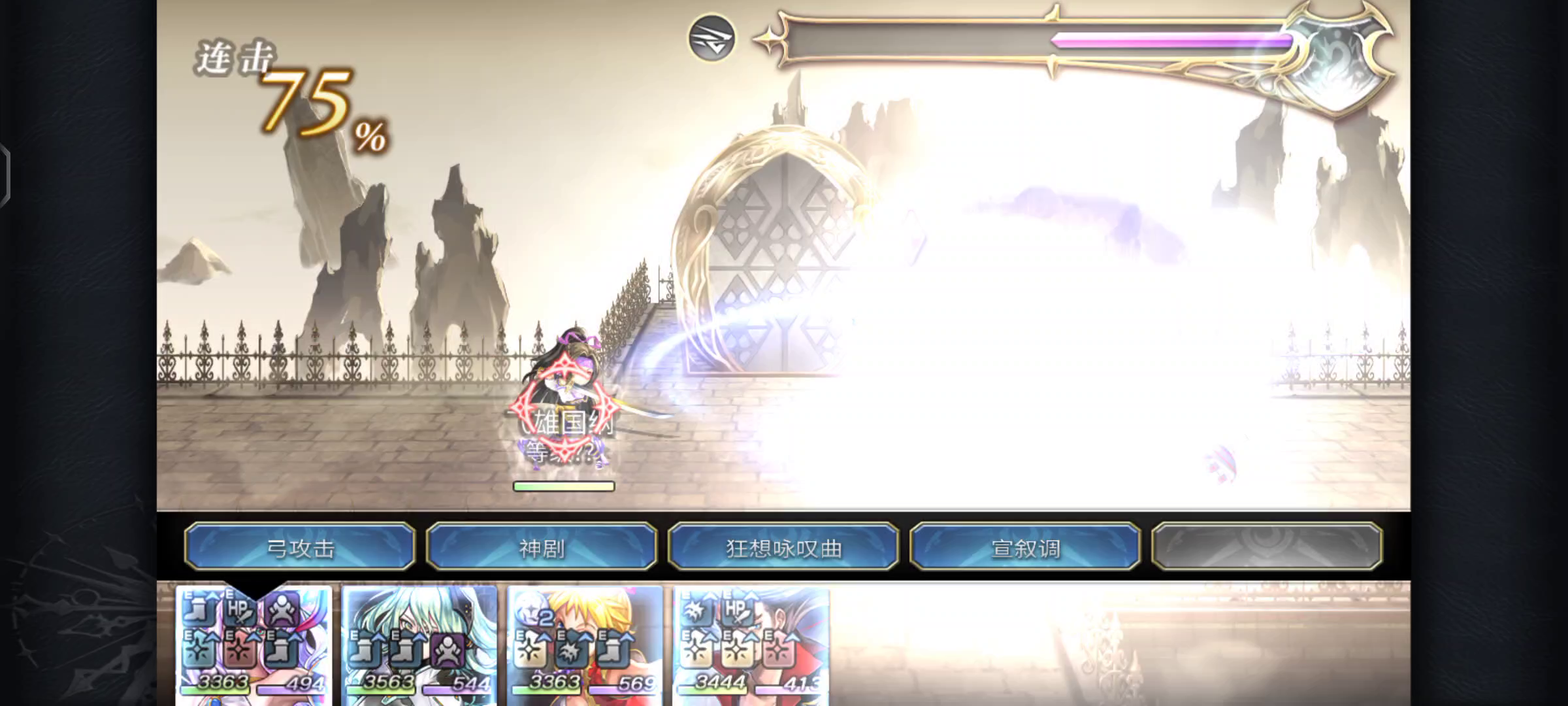 真专中二+3痛晶(附了mp消耗攻击+瞄准射击+敌人数量攻击)因为技能自带无视耐性上毒痛所以mls人鱼弓普莱的灵晶直接摆烂没带攻击概率上痛毒也没带耐性速度mls大于中二让后排队友上前开阵,队友速度快的话还可以再来个枪祈但是我忘了装技能了