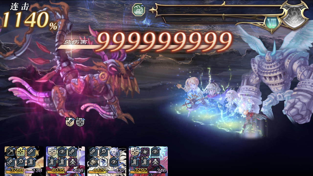 es公主和雷斧抽到一直仓管,看到大佬有作业就抄了一波,讲道理完全体雷队buff上满了连击倍率真就离大谱,以雷霆击碎黑暗!