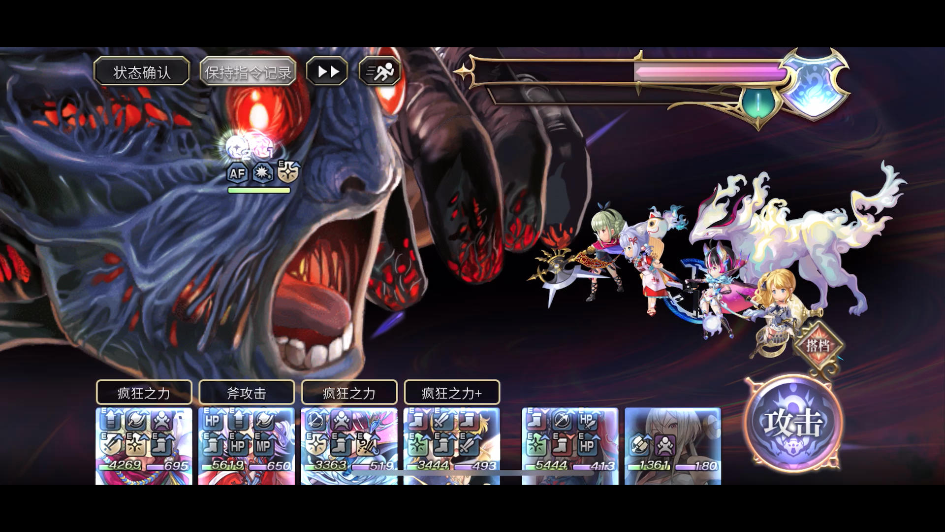 本来是试试的没想到打过了,血和蓝都靠宠物硬回,不能重打大概打法说一下(需要邮差80),前三回合千金和时雨双降力智靠宠物和邮差回血,打满af条转弱打死就行