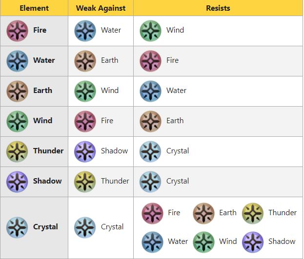 这个游戏的攻击分为两大类:元素攻击和类型攻击。元素攻击分别是火,水,土,风(后面还会出雷,阴,晶),类型攻击分为突(Pierce),打(Blunt),斩(Slash),魔法(Magic)四种。如果Boss是弱某一种元素攻击或者类型攻击,那么该元素攻击或类型攻击的技能就会造成差不多200%的伤害(),如果Boss是抵抗某一种元素攻击或者类型攻击,那么该攻击造成只有差不多25%的伤害。 当你点选一个