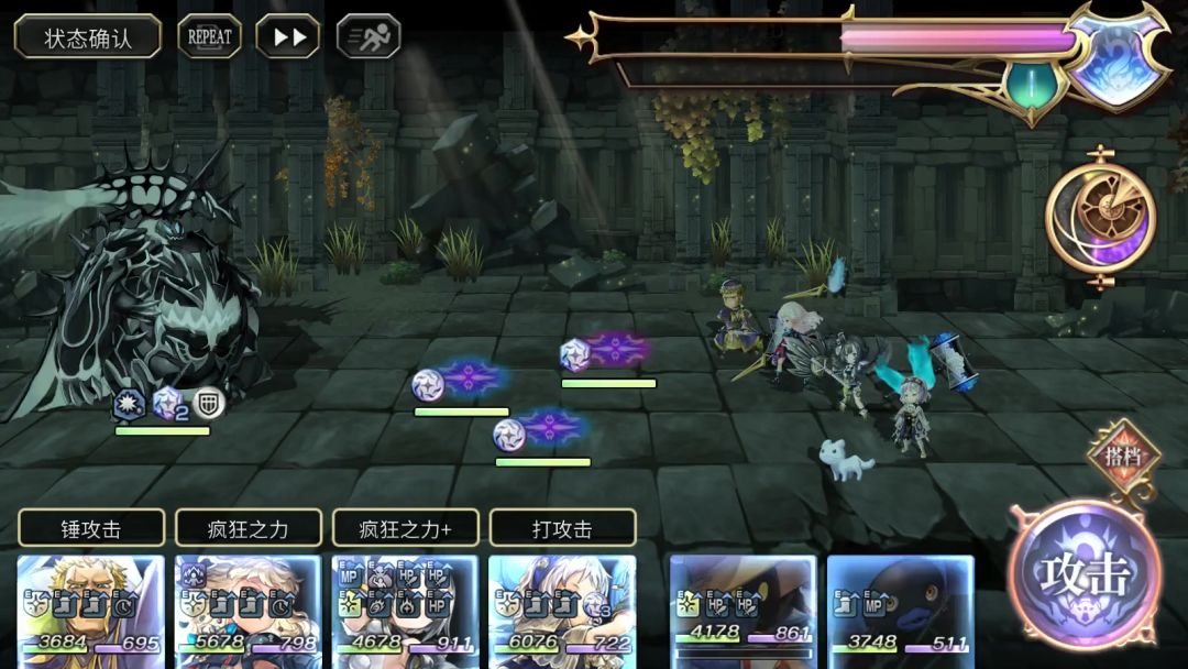 BOSS弱雷阴晶打,耐地水火风,速度220,常驻伤害减半 AF:3333 1111....星421 摩可技能,星400,AF:3111 1111....最后梅丽娜按2唱歌 摩可技能,星400,绀兹技能,AF:1111.... 摩可需要装备逗海棒来解除异常状态