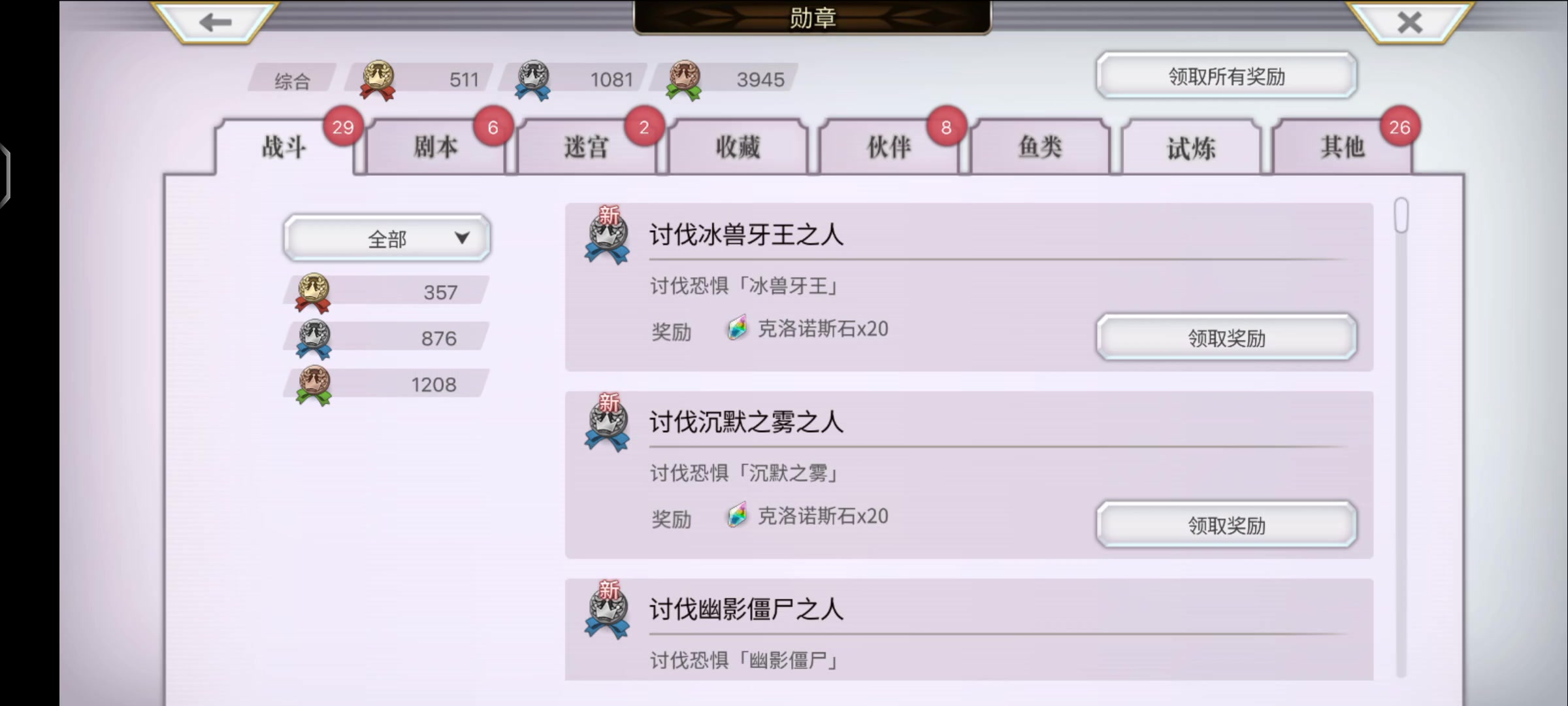 一共71个成就,给一千多不到两千钻
