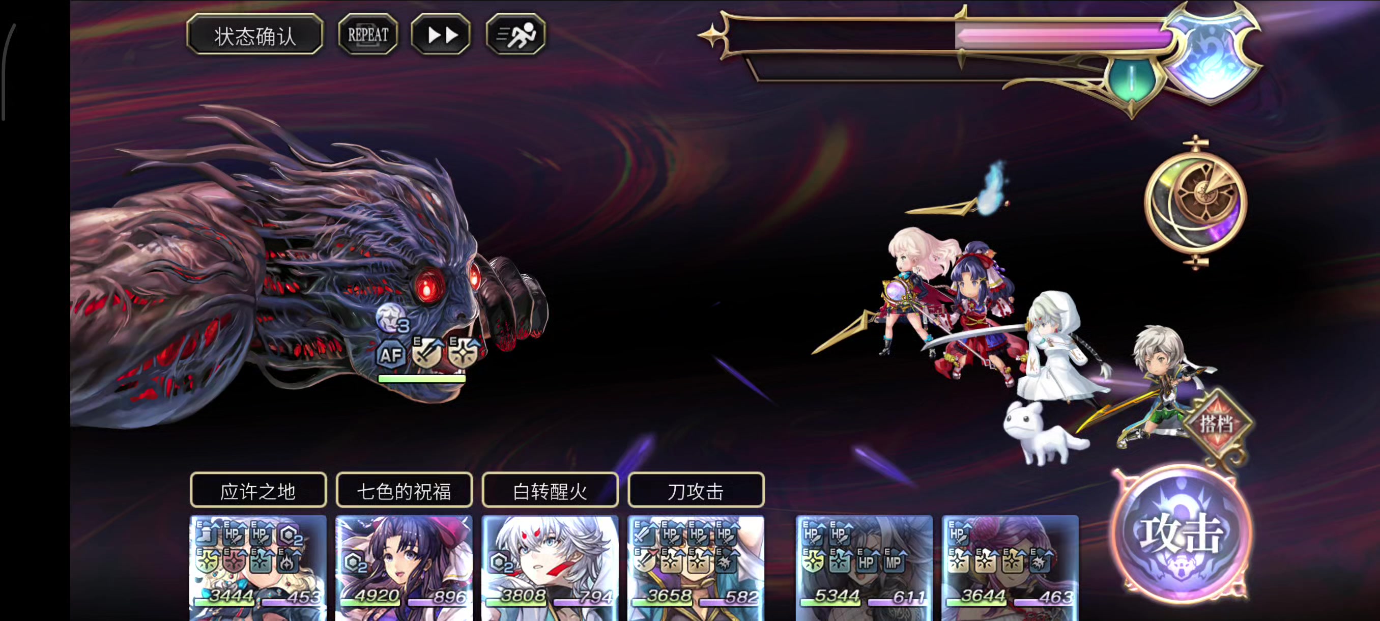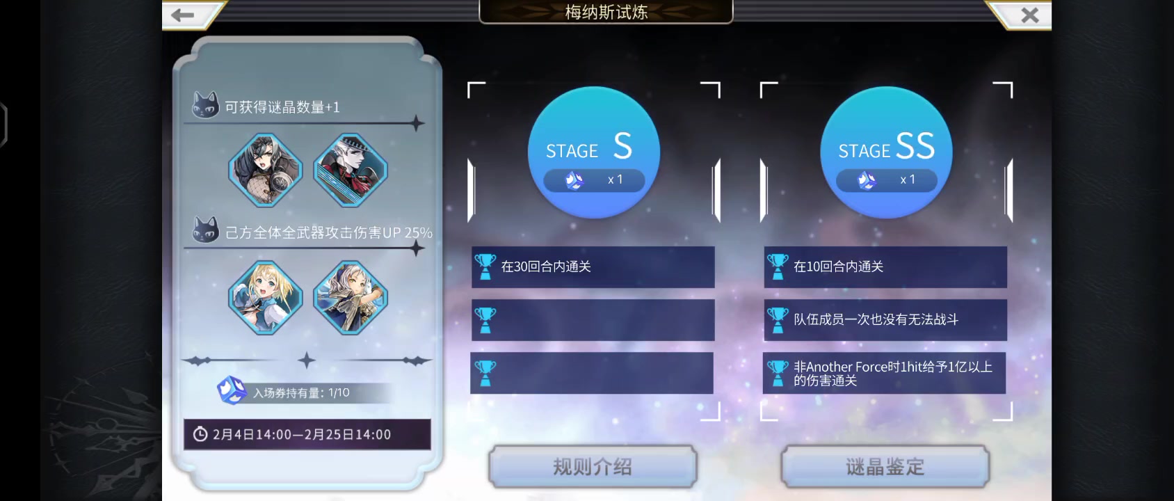 单挑是指只有es琪路莉露一个梦见觉醒(配布不算)。喜欢心之剑连发吗? 4千万分压线过,有谜晶剑,不分享配置,参考意义不大,投攻略区仅作纪念。 第四回合有凹点,必须攒满星导爆发瓶以及摩可的5颗豆,使用10级潘多拉盒。 新年好,大家新年好! #另一个伊甸 #另一个伊甸超越时空的猫